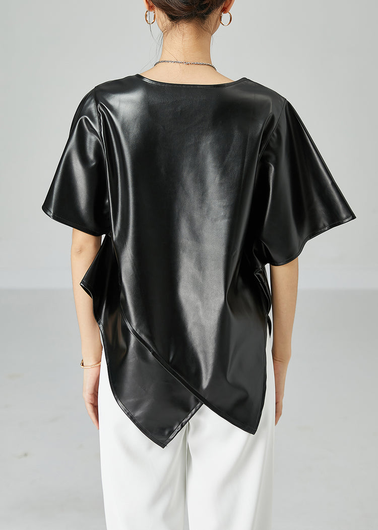 Bohemian Black Asymmetrical Patchwork Leather Tanks Short Sleeve