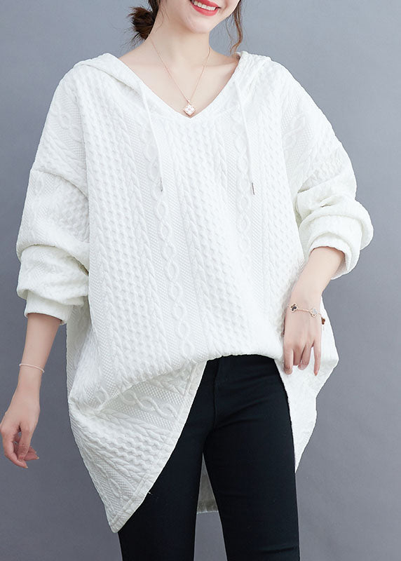 Bohemian Black Drawstring Hooded Sweatshirt Long Sleeve