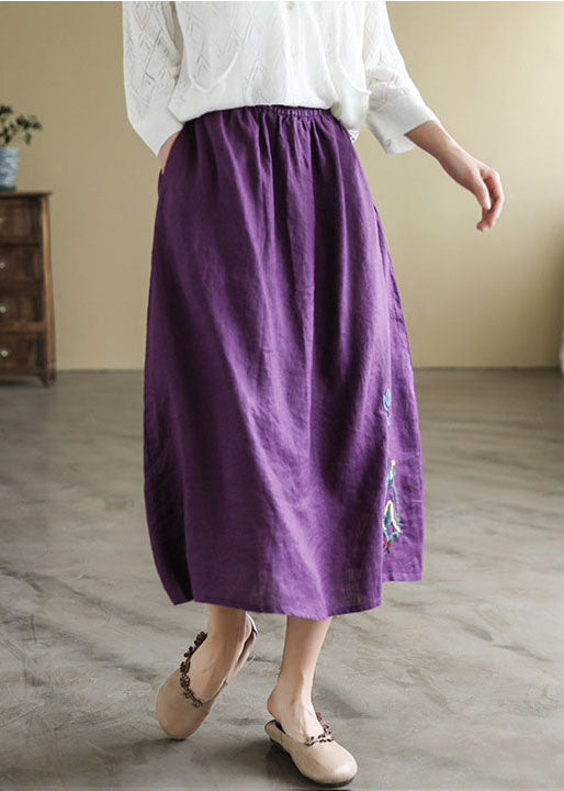 Bohemian Black Elastic Waist Embroideried Linen A Line Skirts Spring