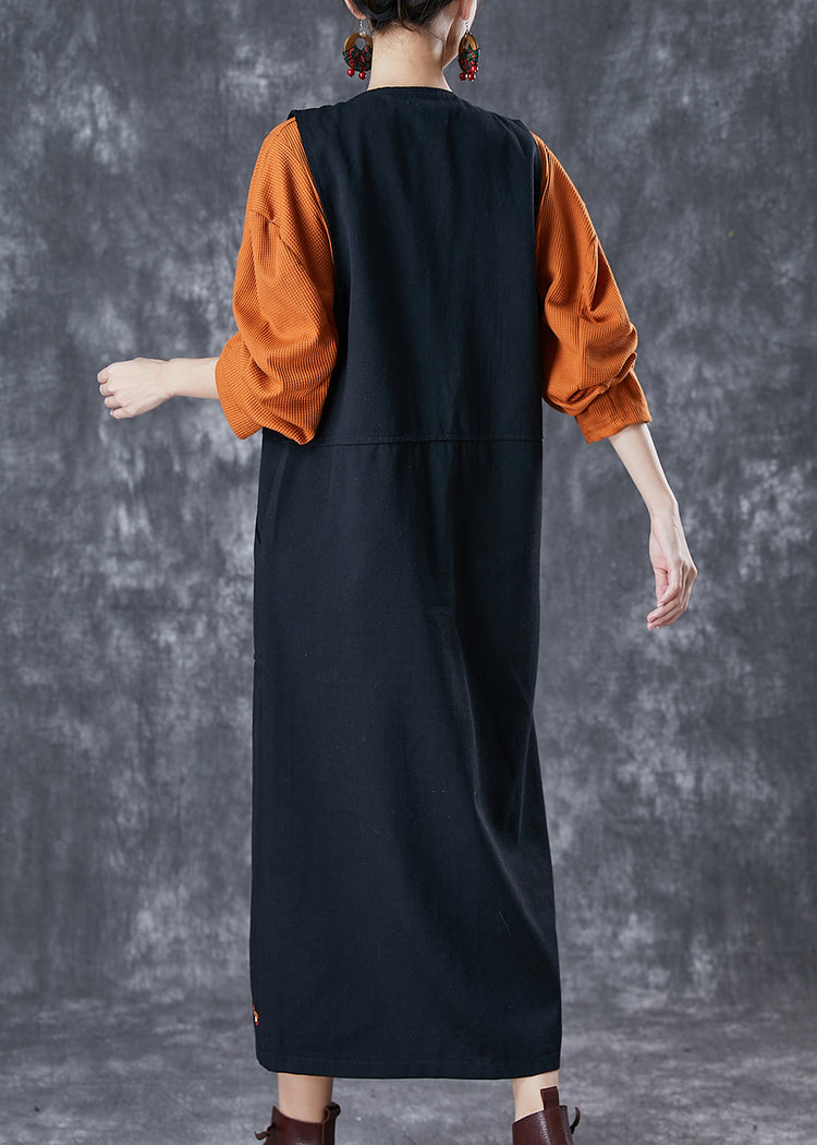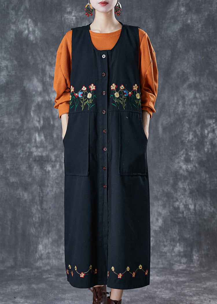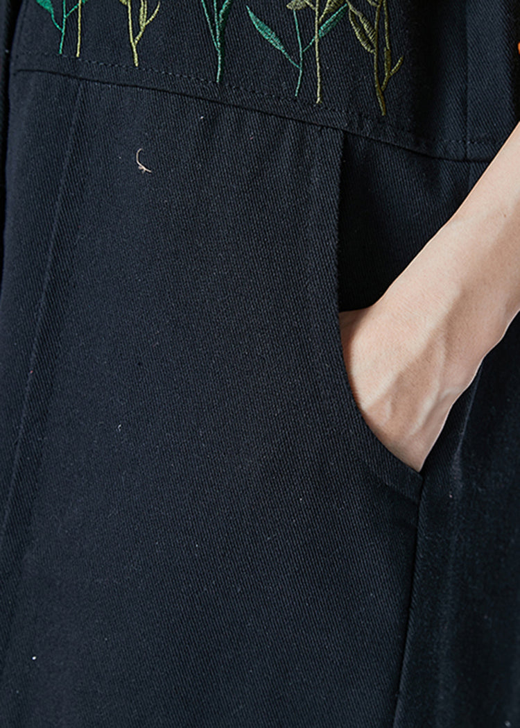 Bohemian Black Embroideried Pockets Cotton Two Pieces Set Spring