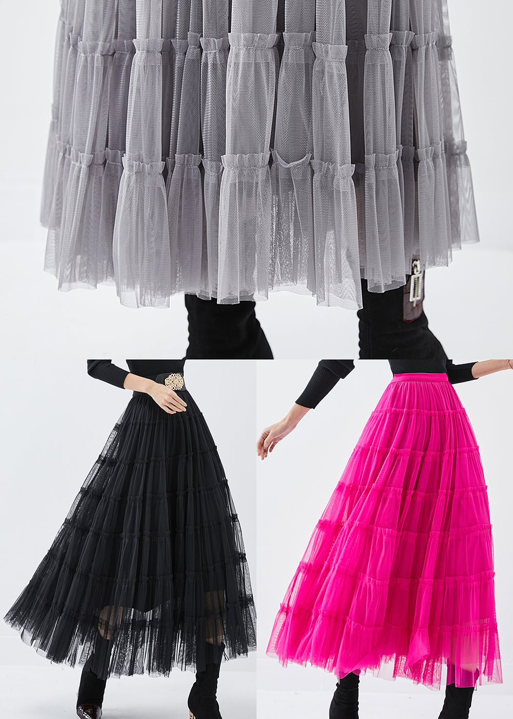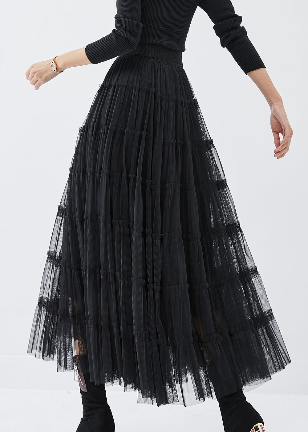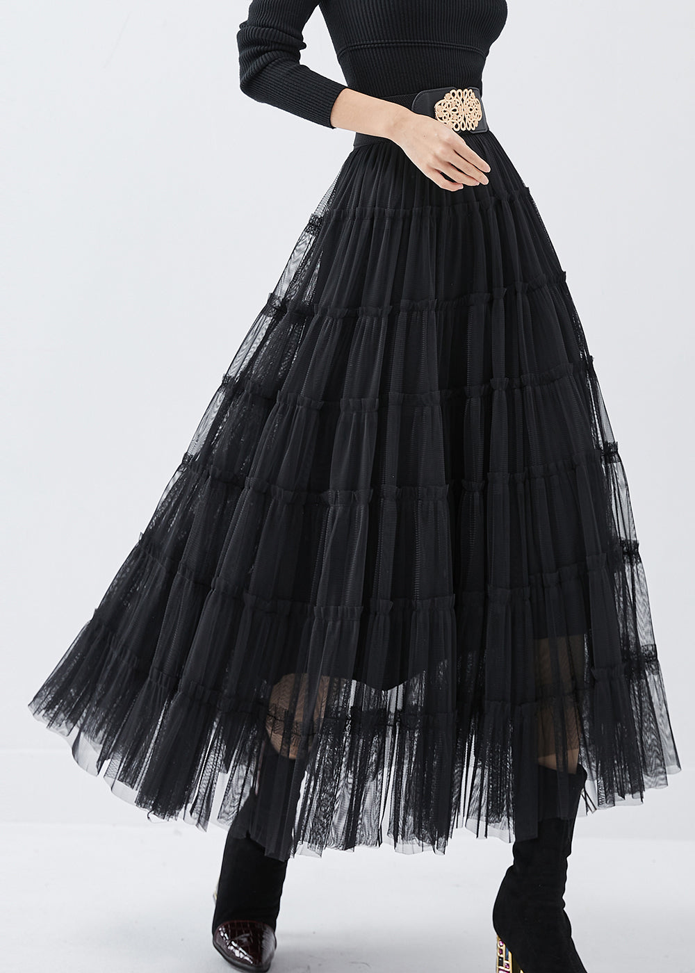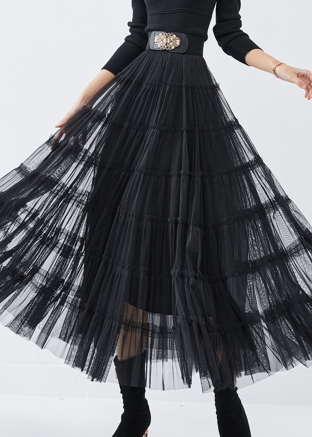 Bohemian Black High Waist Tulle Holiday Skirt Spring