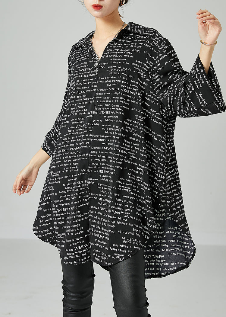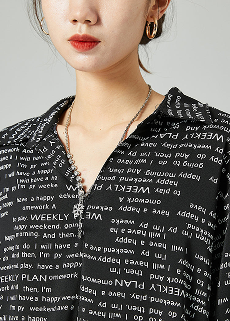 French Black Oversized Letter Print Chiffon Shirt Dress Spring