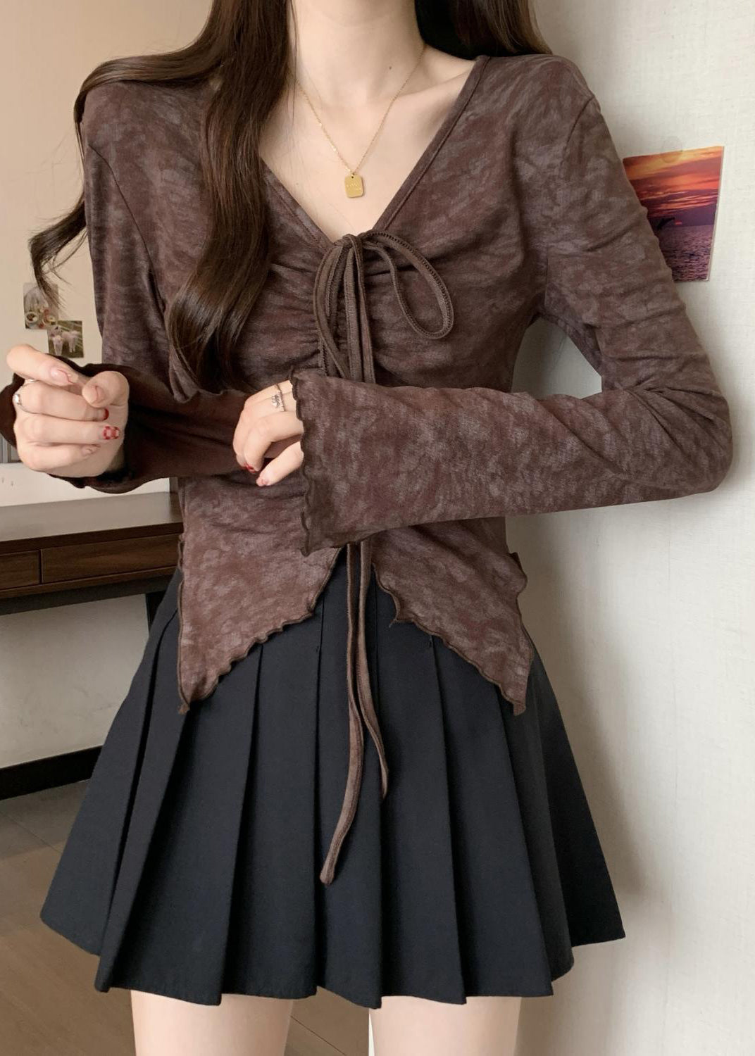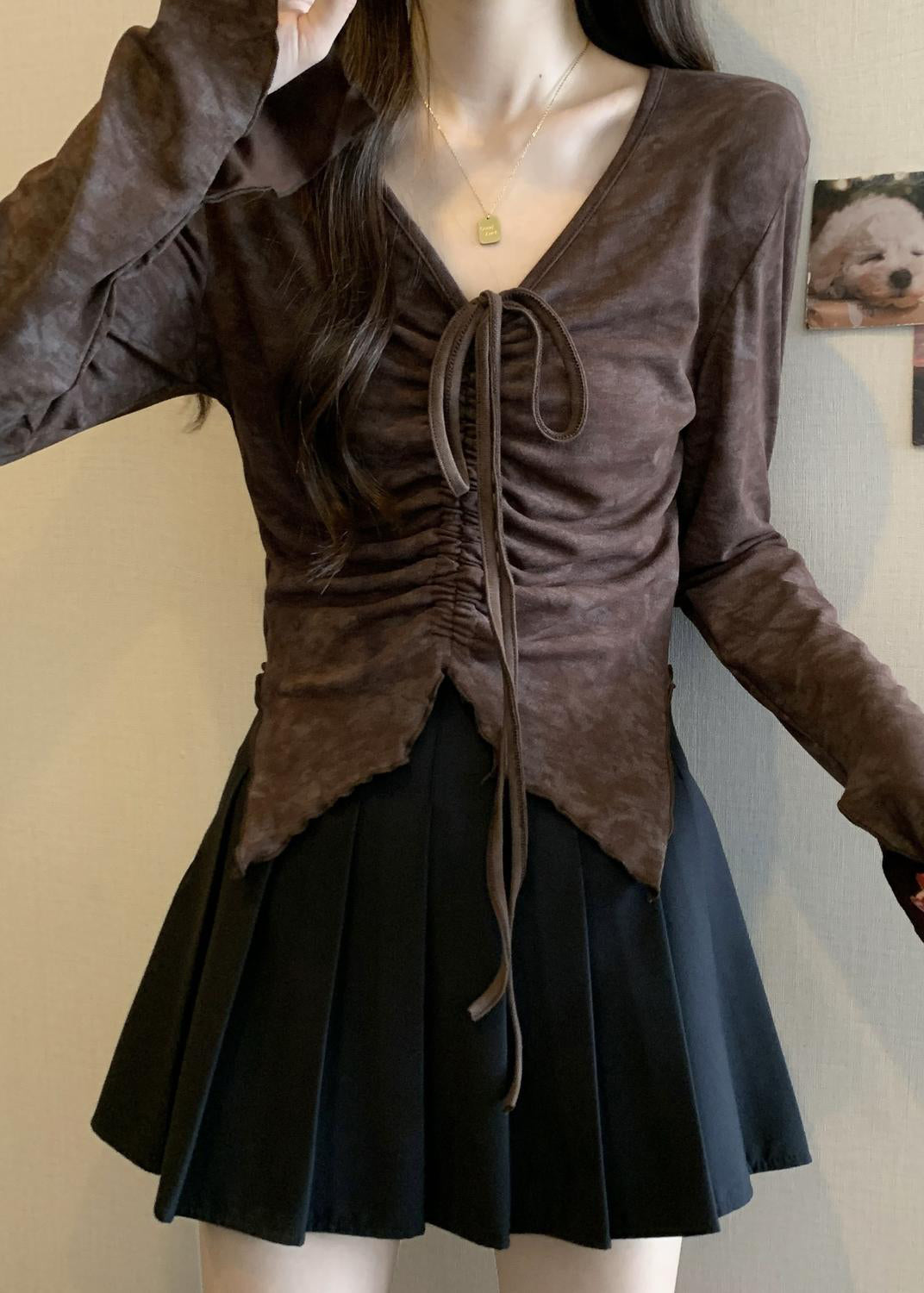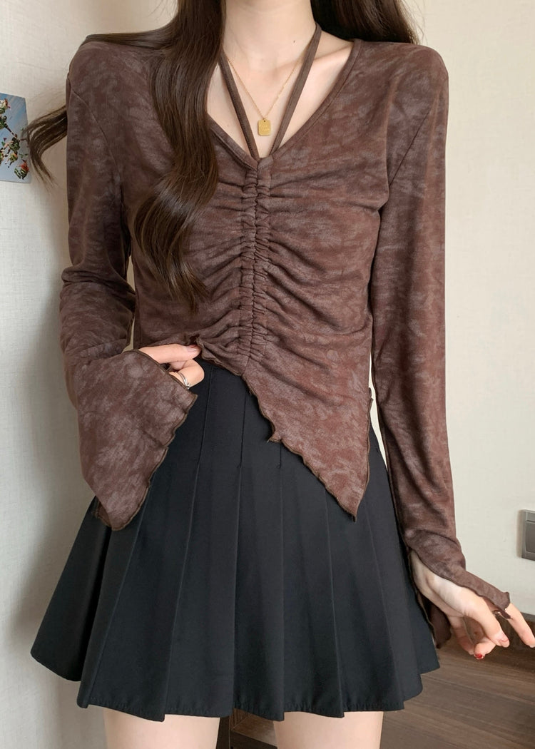 French Brown Cinched Tie Dye Cotton Shirt Fall