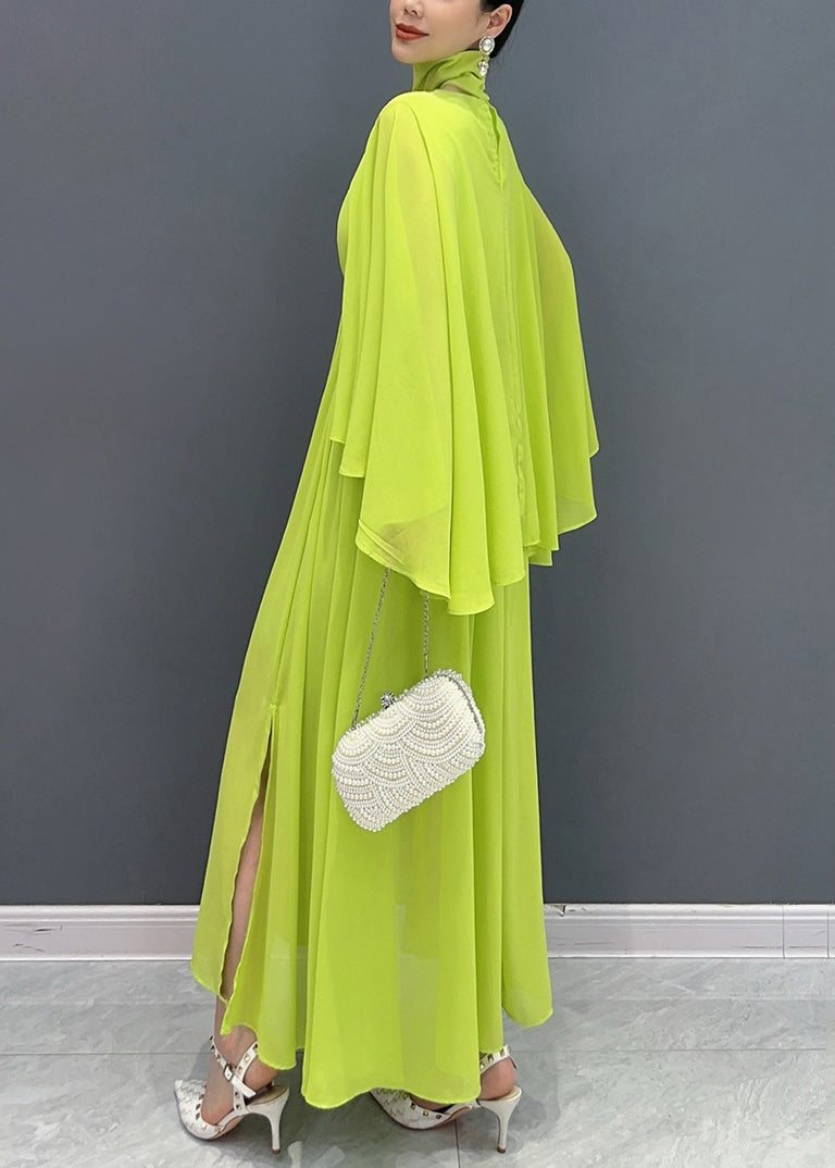 French Green Cape Patchwork Chiffon Long Dresses Flare Sleeve