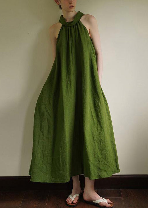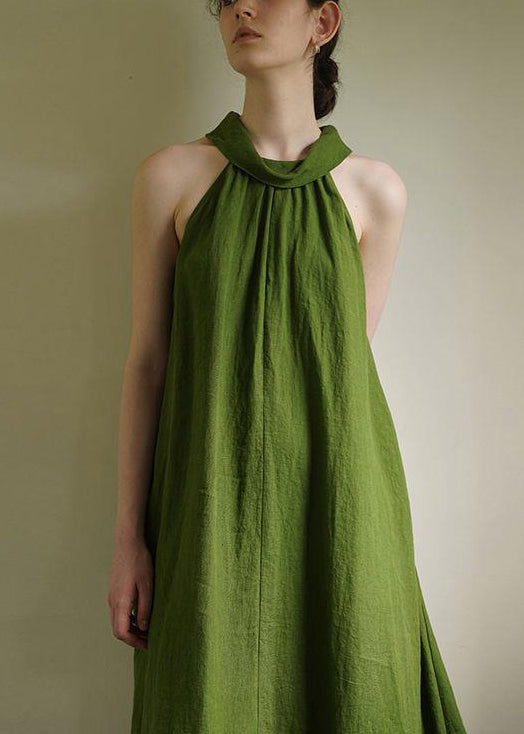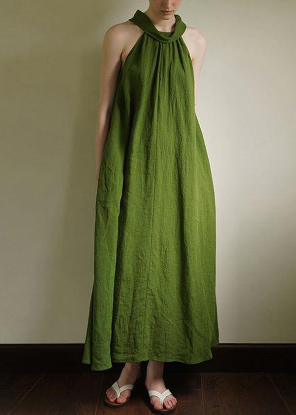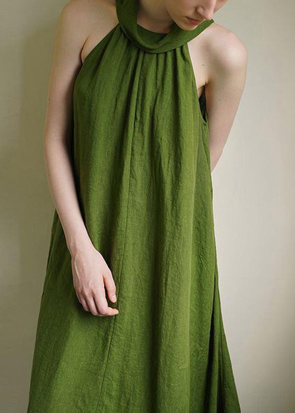 French Green Cold Shoulder Cotton Long Dress Summer