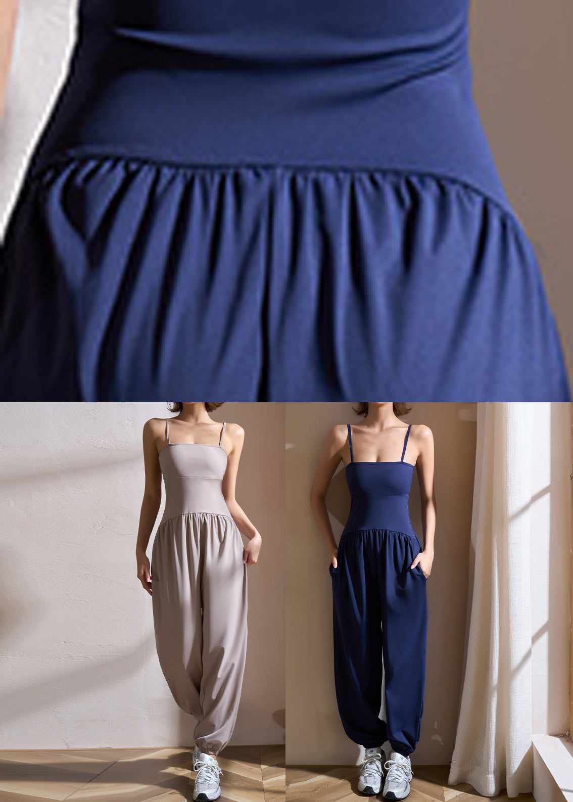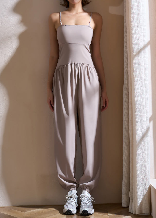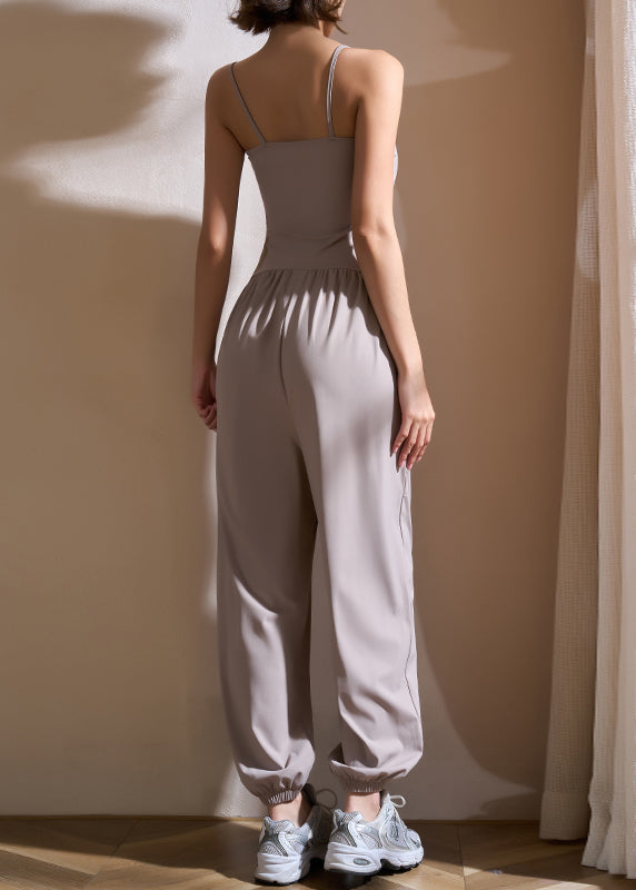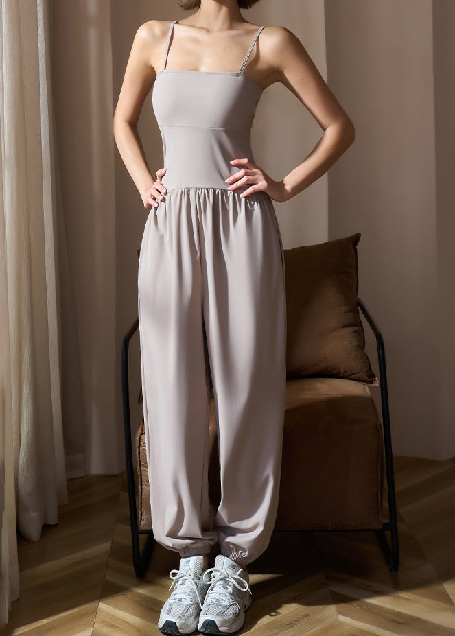 Grey Wrinkled Patchwork One Piece Workout Suit