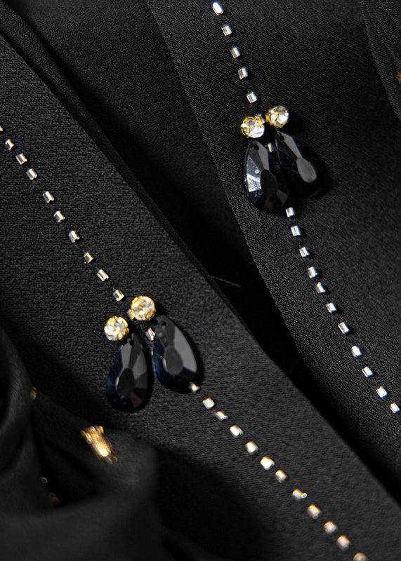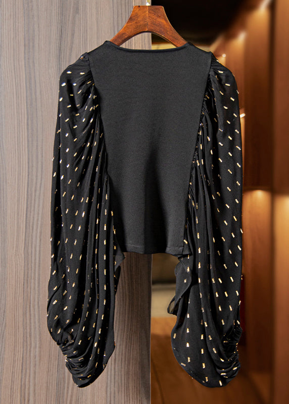Handmade Black Zircon Wrinkled Patchwork Cotton Cardigan Long Sleeve