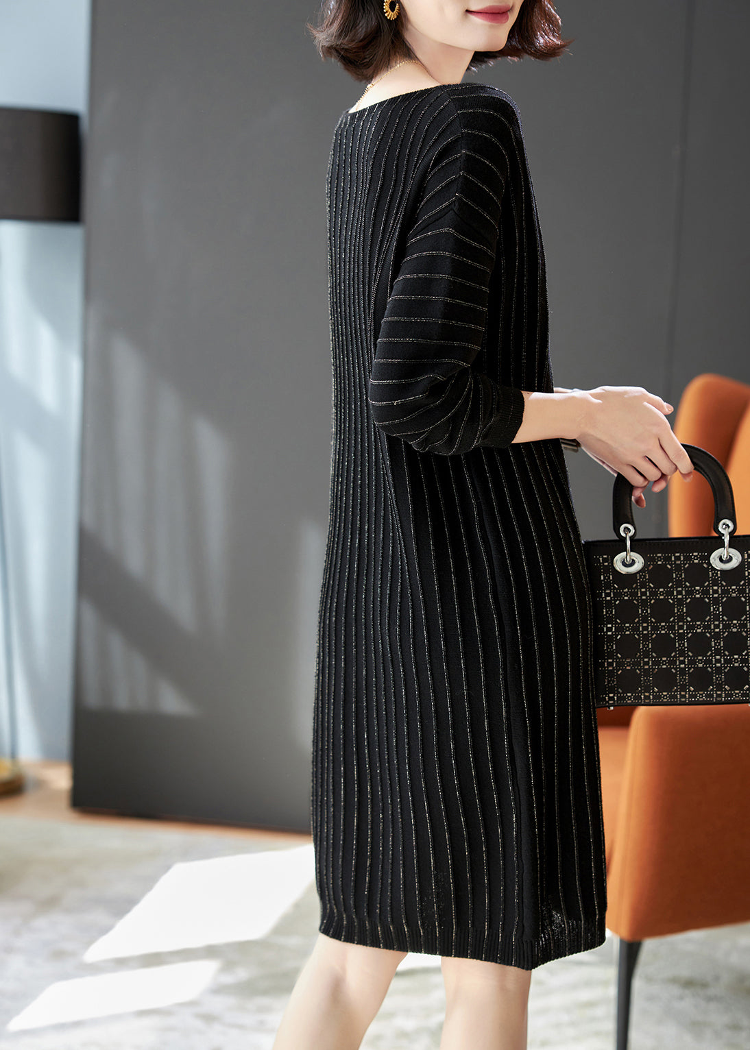Handmade Black Striped Knit Pullover Streetwear Dress Spring