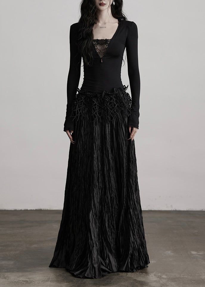 Bohemian Black Wrinkled Exra Large Hem Evening Skirt Spring