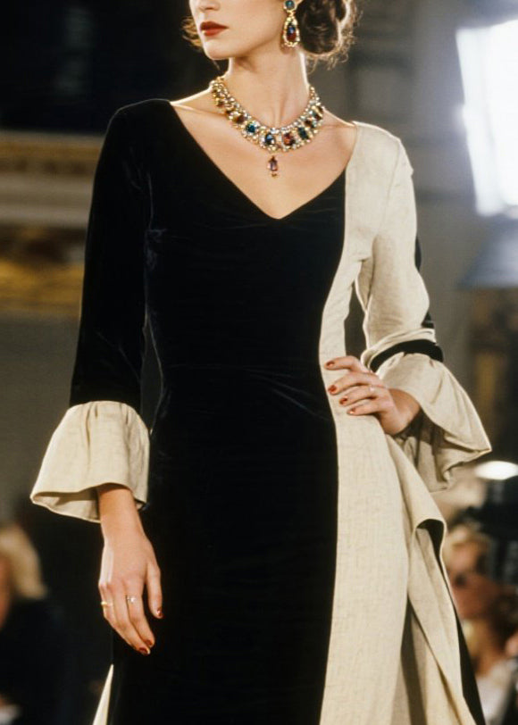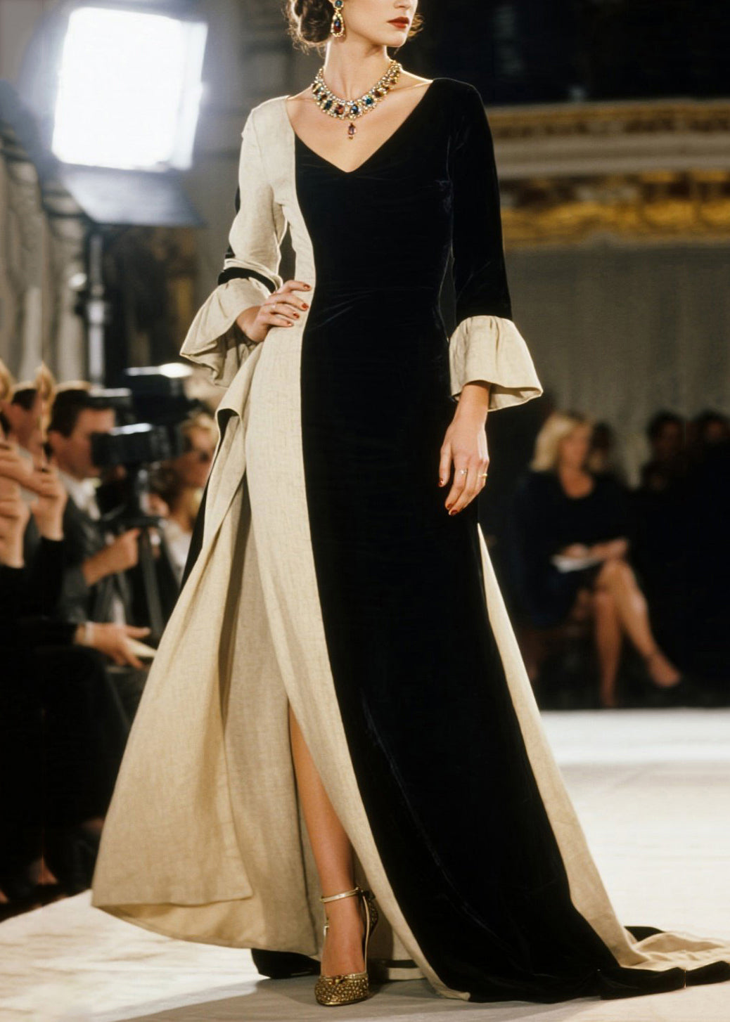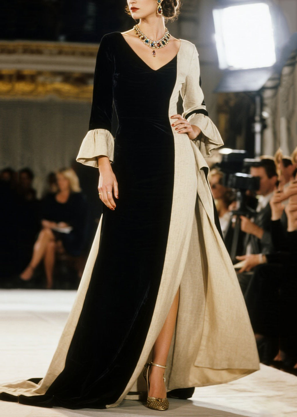 French Black Asymmetrical Patchwork Side Open Dinner Dresses Flare Sleeve