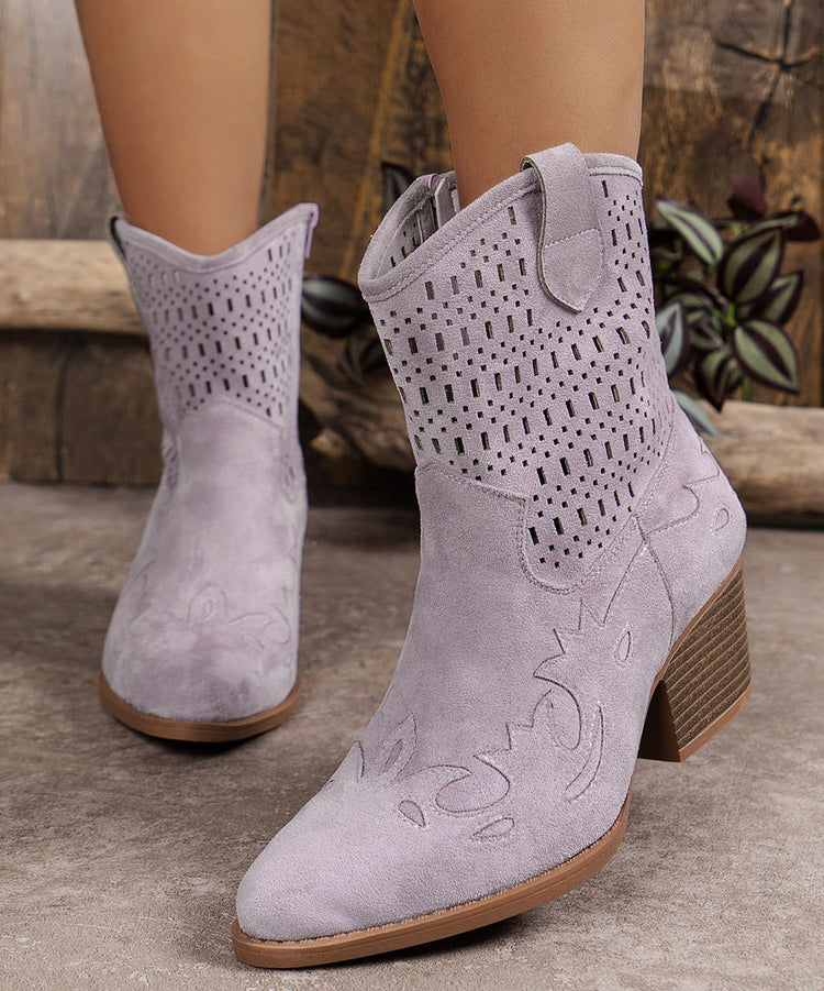 Vintage Green Hollow Out Zippered Suede Chunky Boots