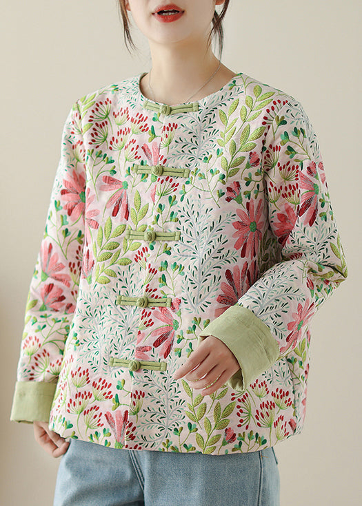 Art Green Embroidered Button Cotton Coats Fall