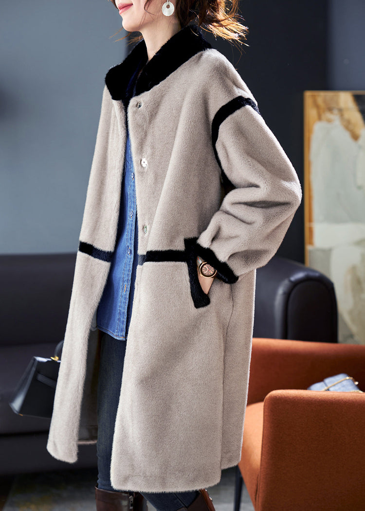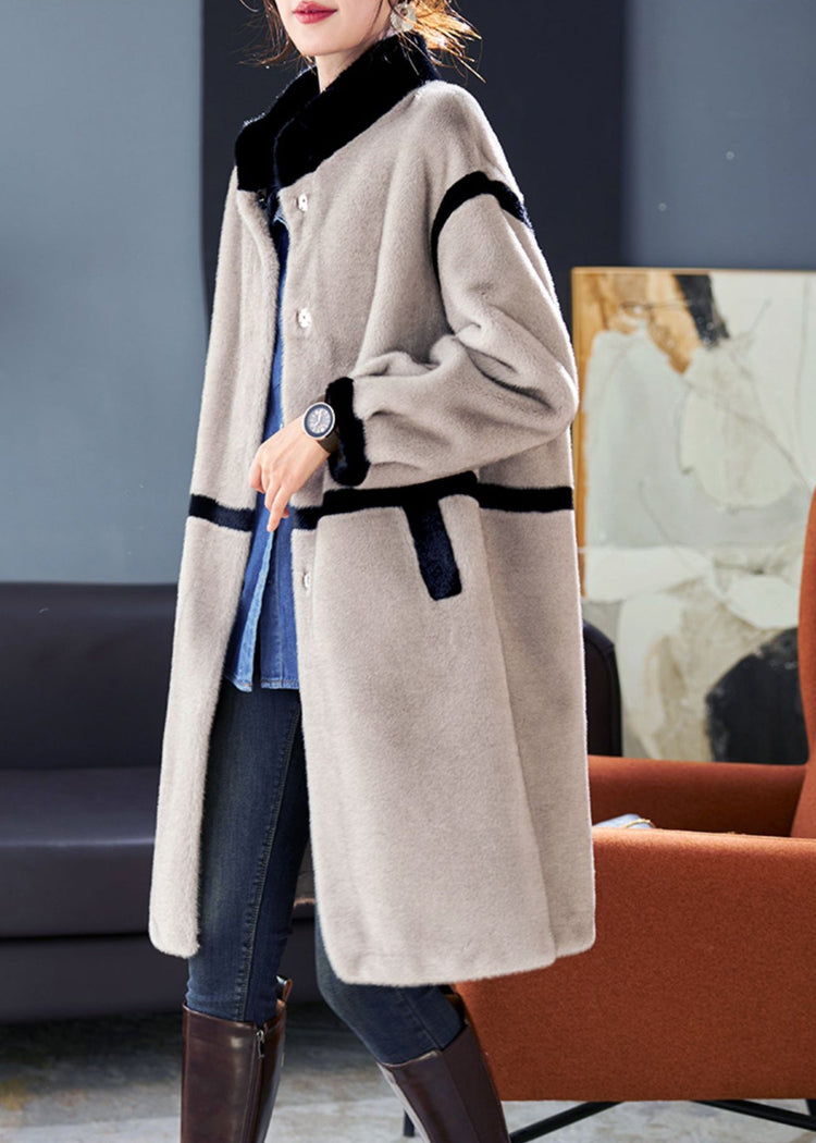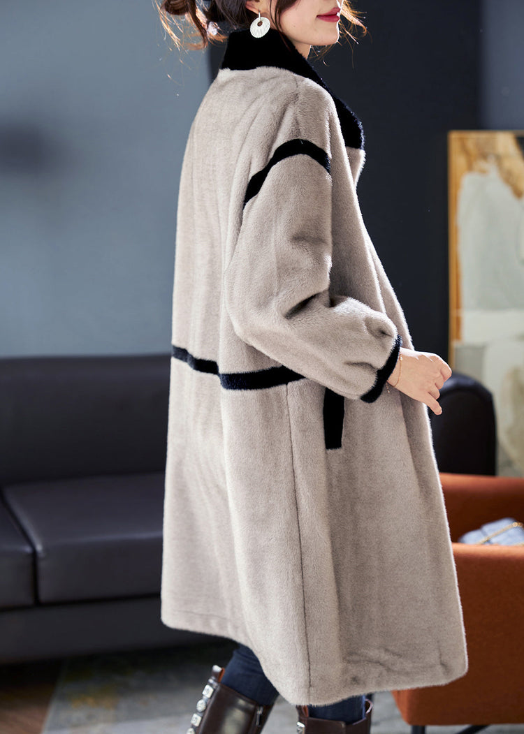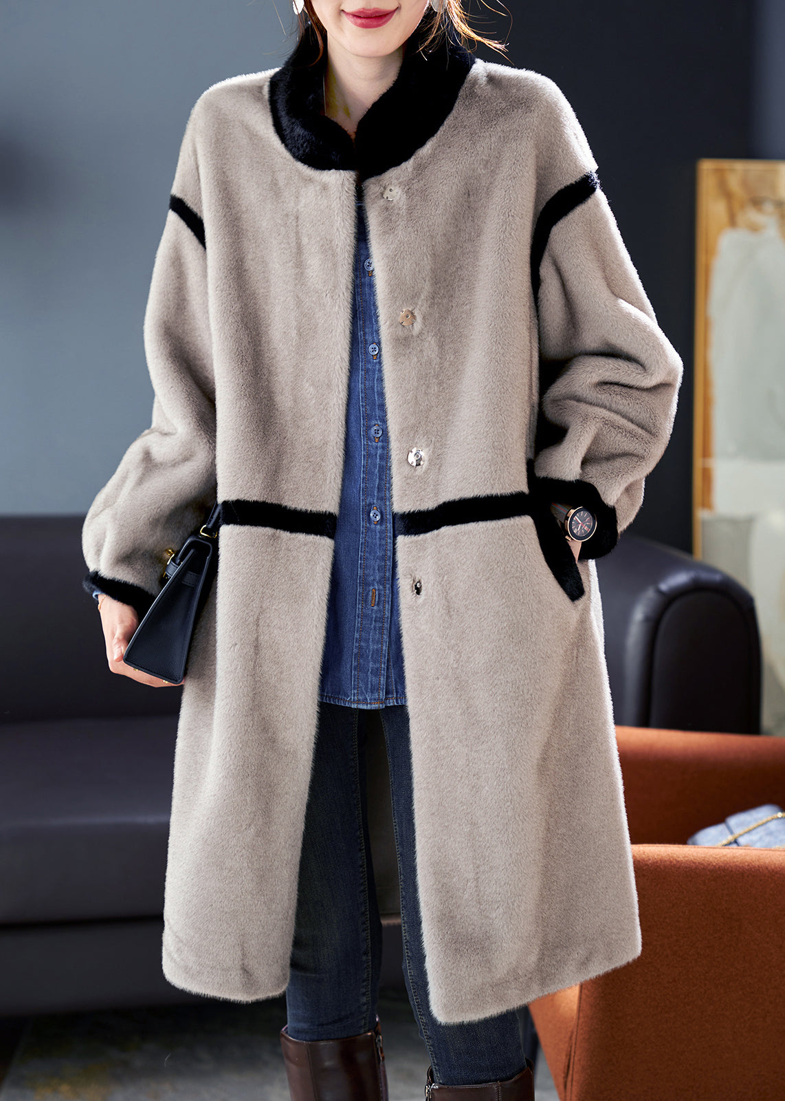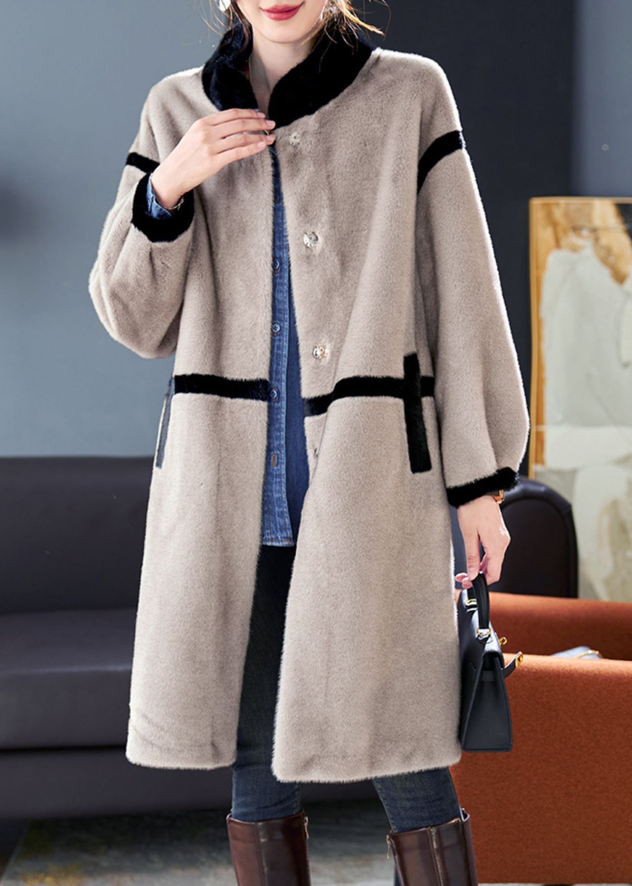 Art Grey Stand Collar Patchwork Mink Velvet Coats Winter