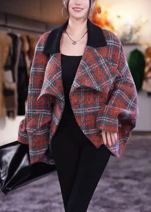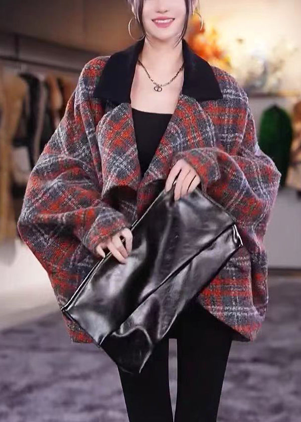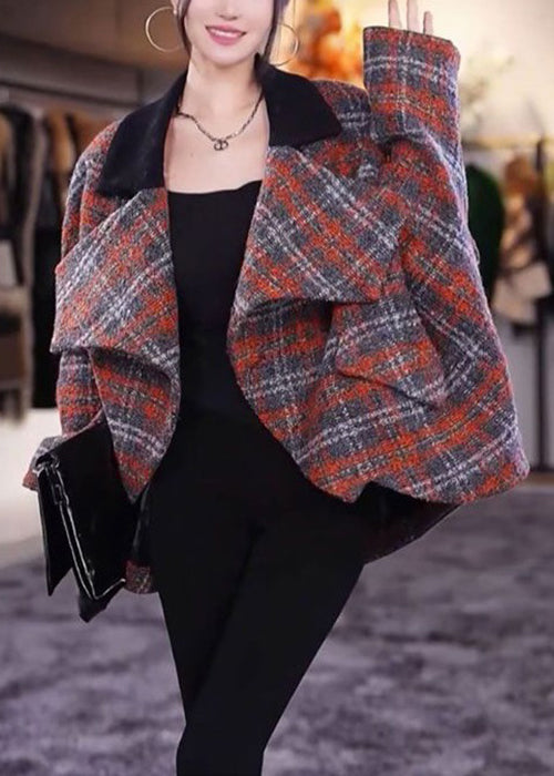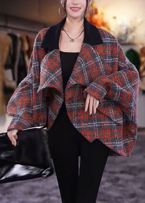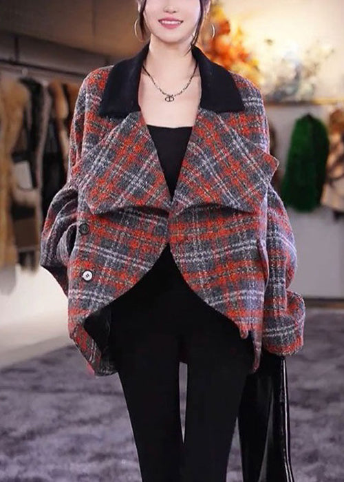 Beautiful Plaid Peter Pan Collar Pockets Woolen Coats Long Sleeve