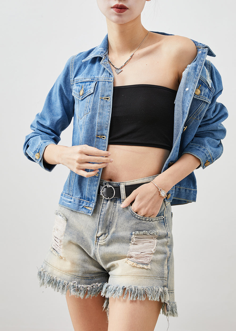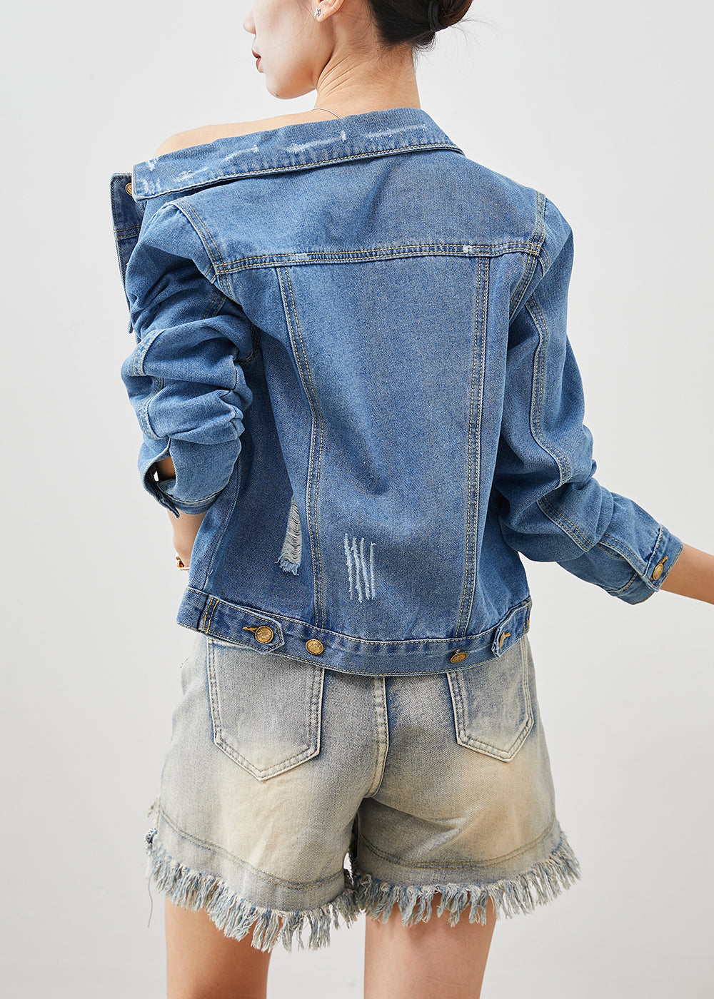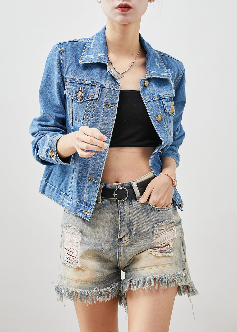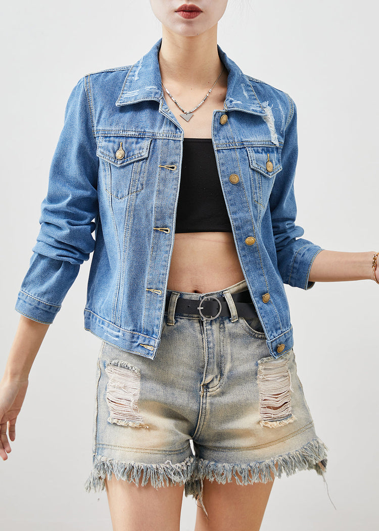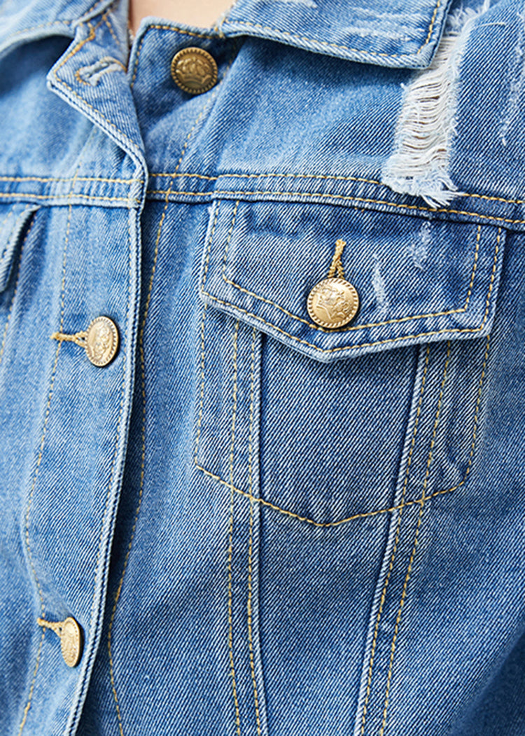 Boho Denim Blue Silm Fit Cotton Coats Spring