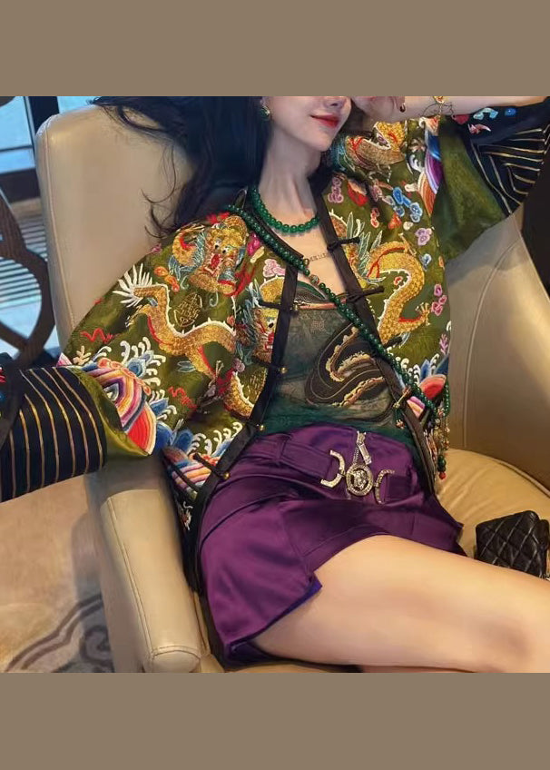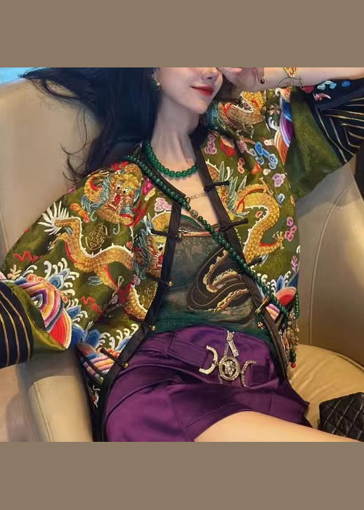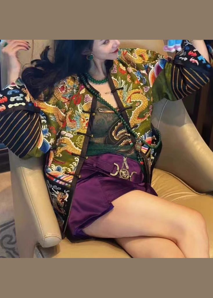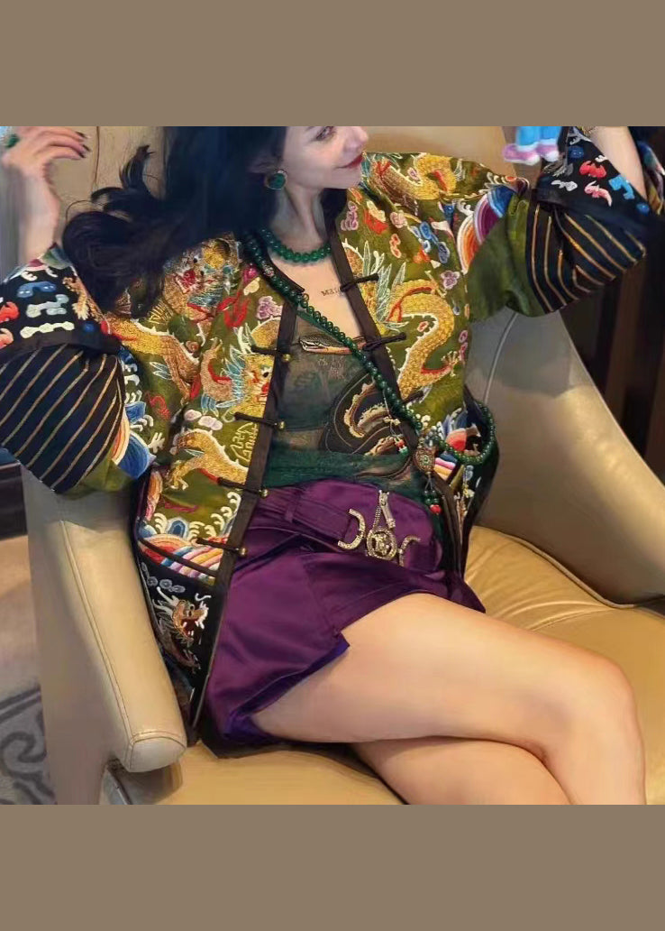Chinese Style Yellow Embroideried Button Patchwork Cotton Jackets Fall