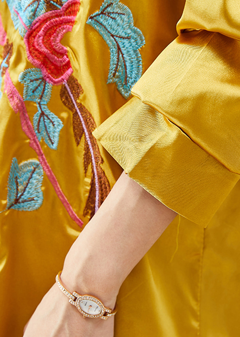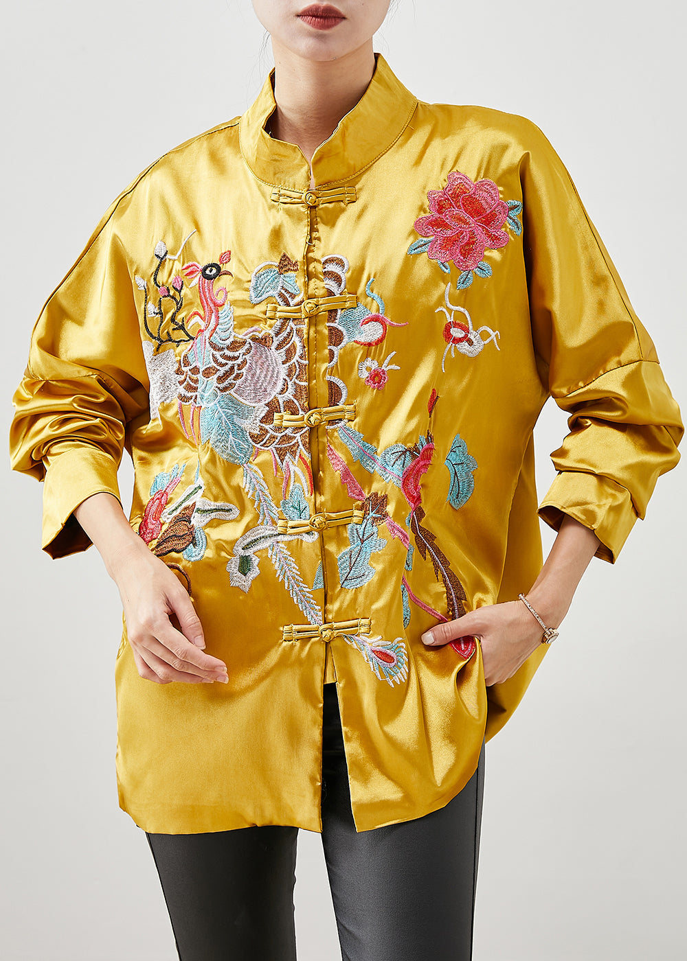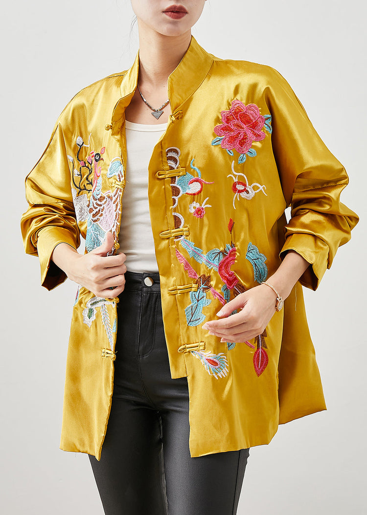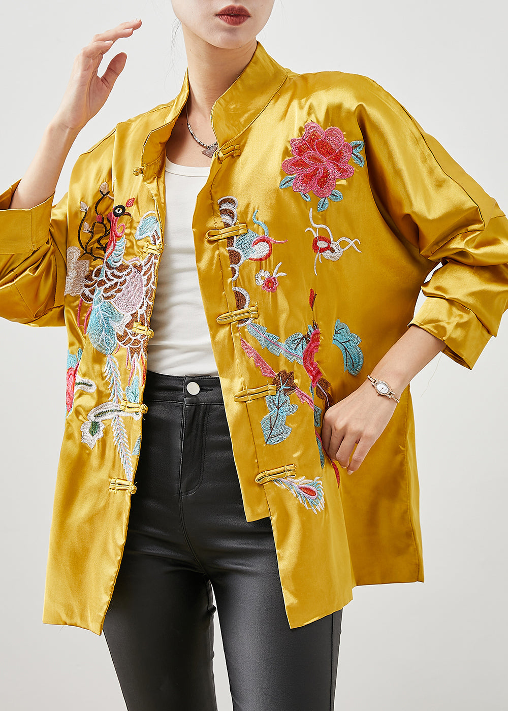 Chinese Style Yellow Embroideried Silk Jackets Spring