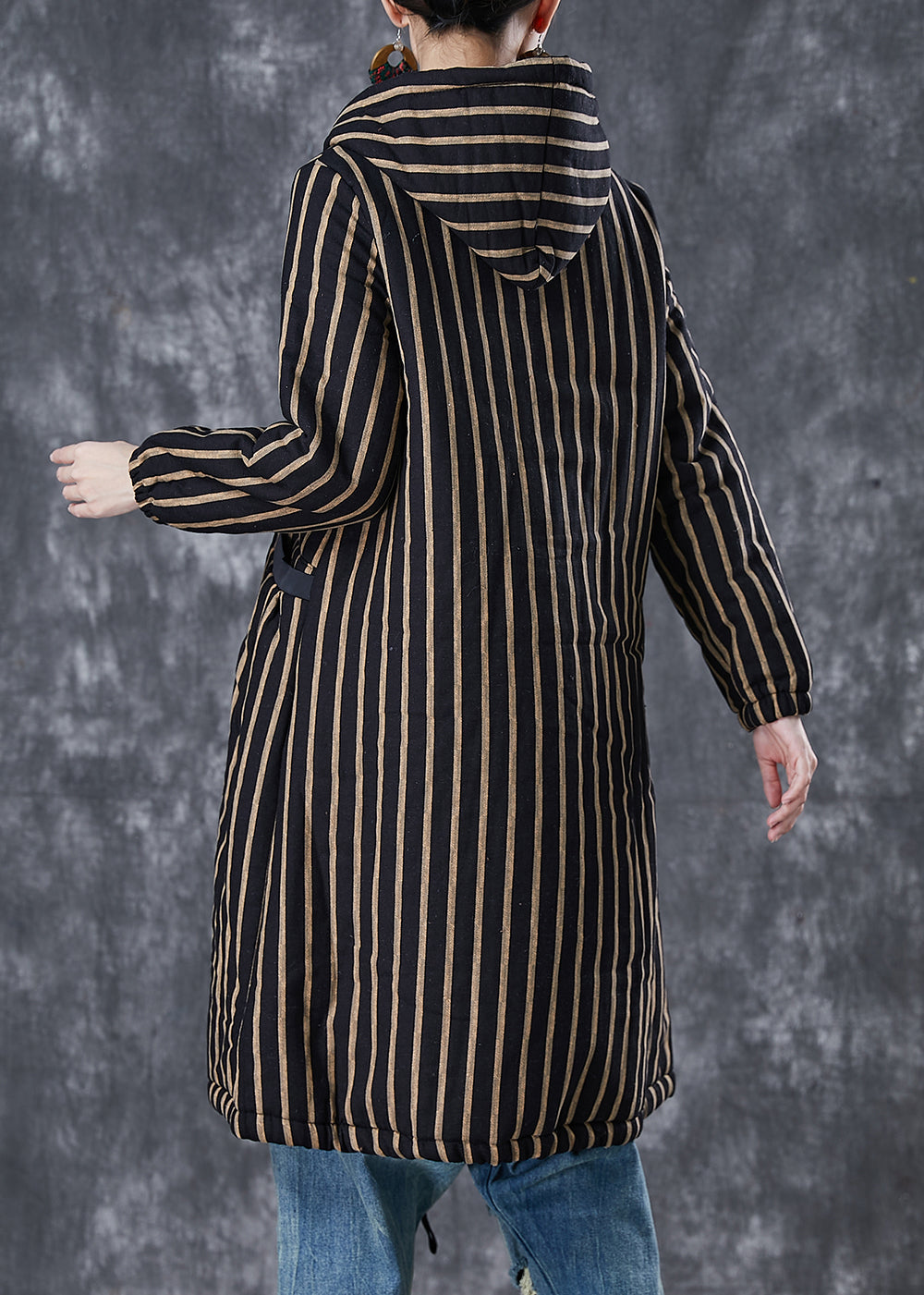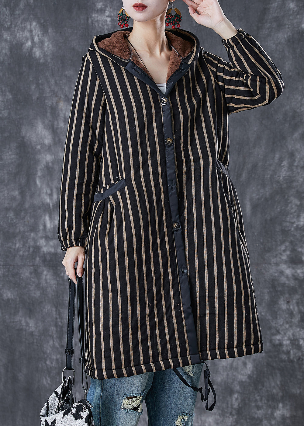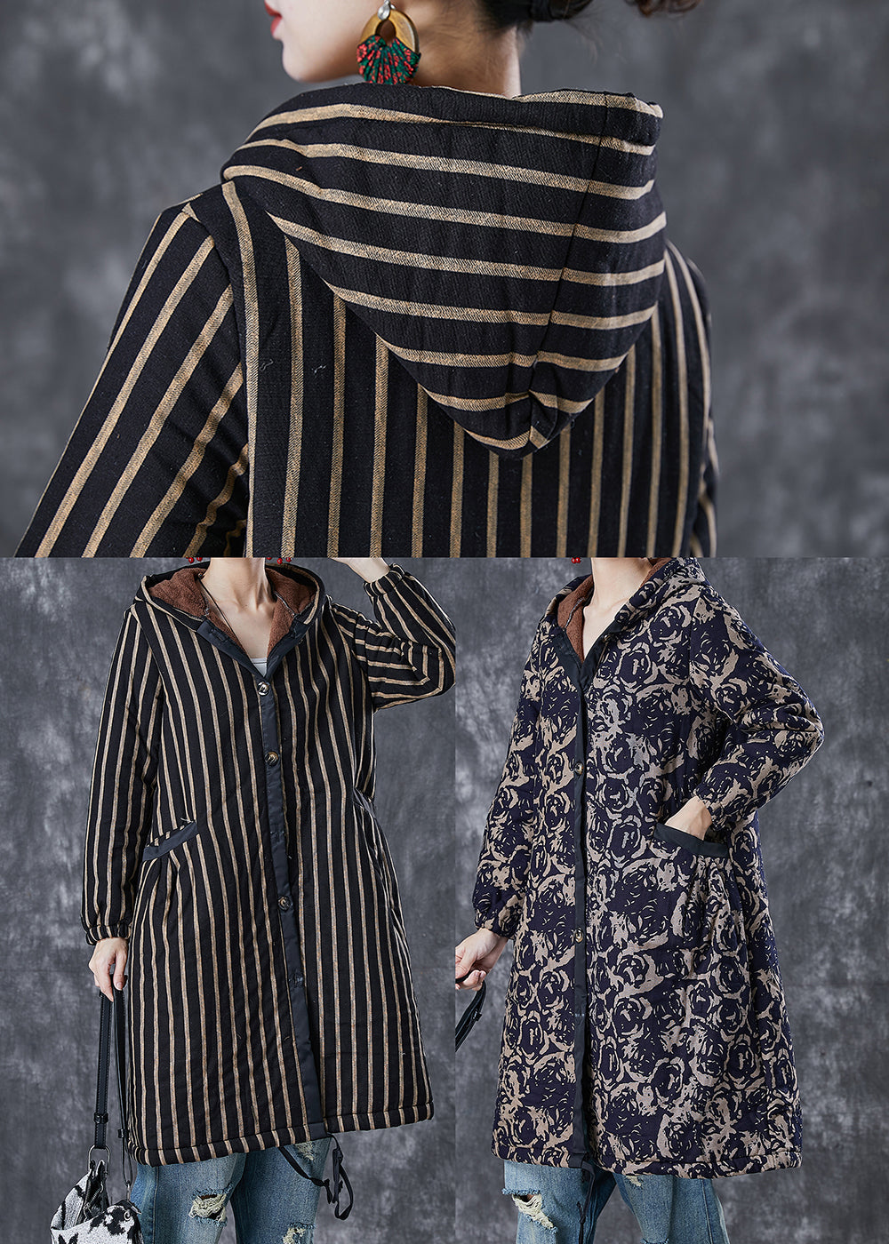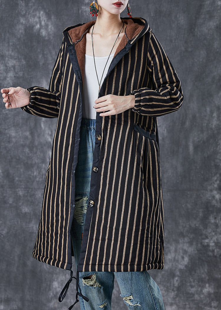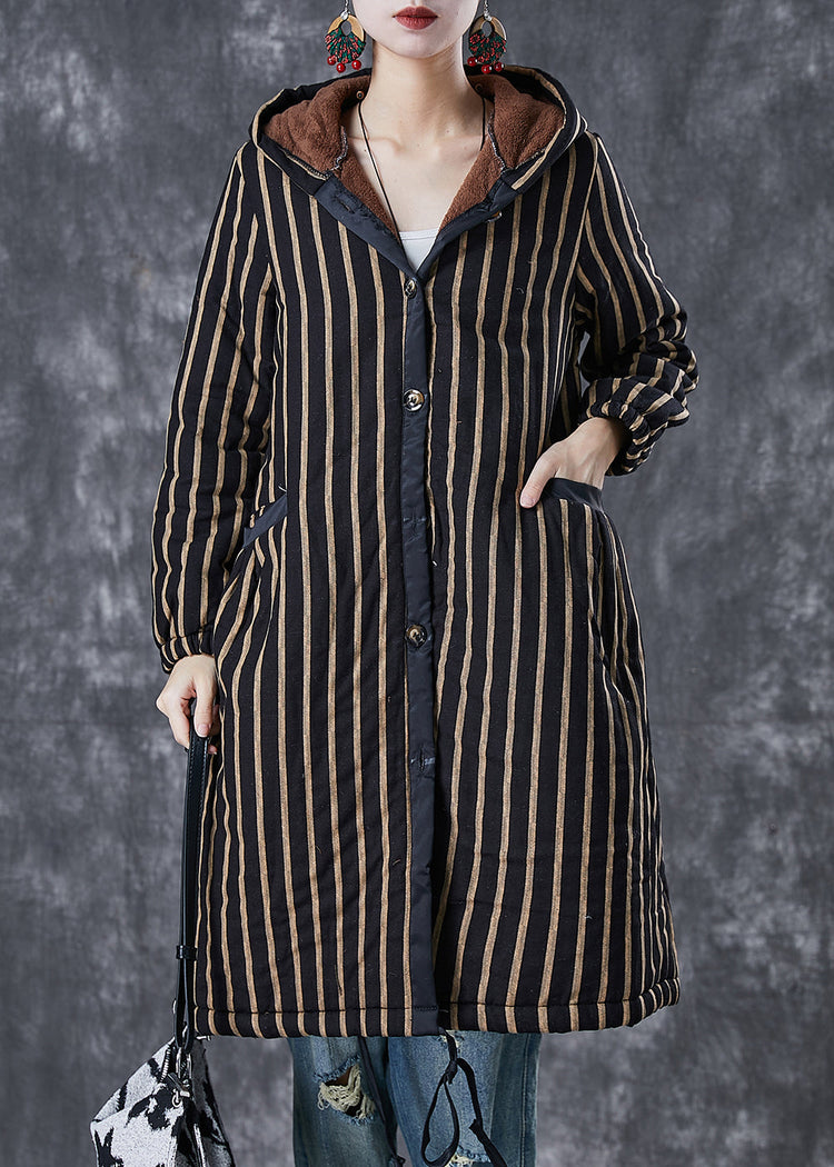 Coffee Striped Warm Fleece Coats Hooded Winter