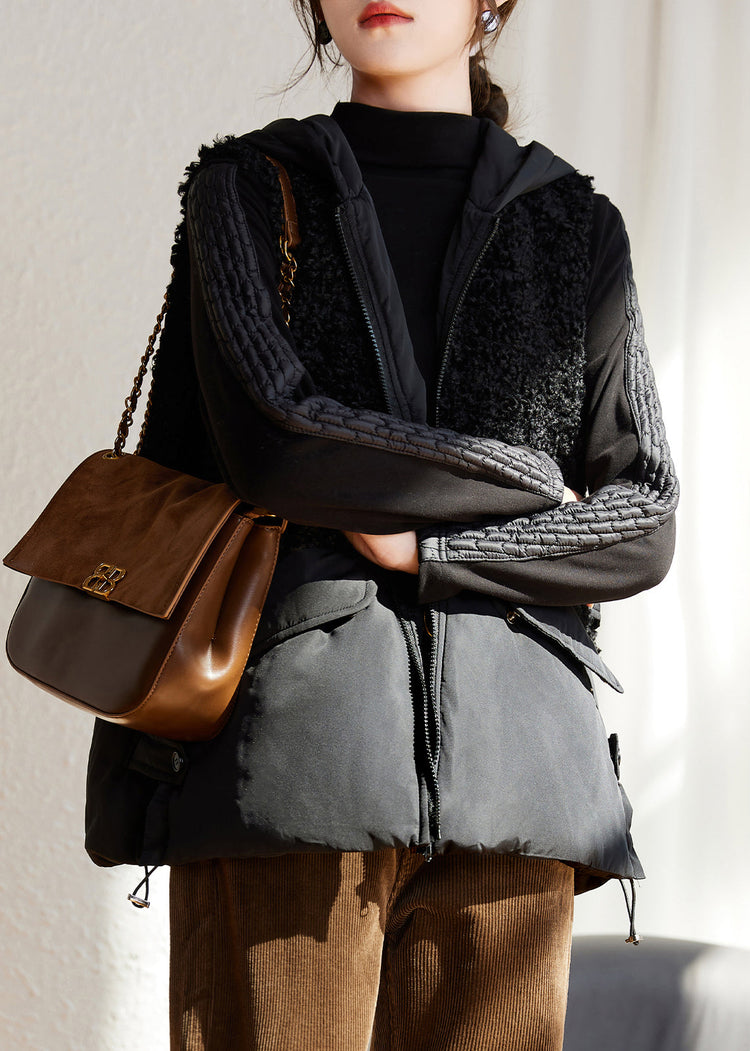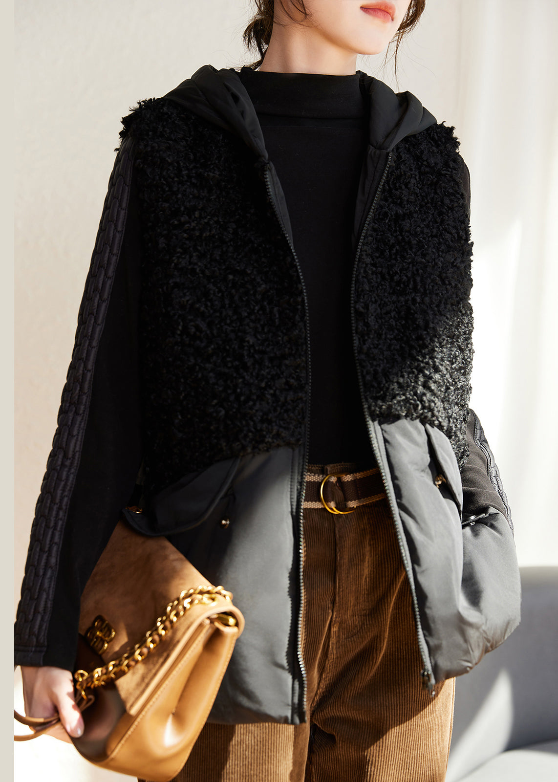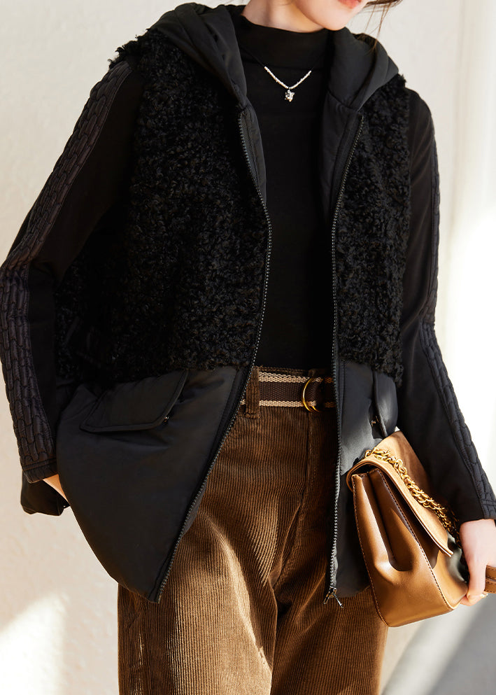New Black Hooded Teddy Faux Fur Patchwork Duck Down Waistcoat Sleeveless