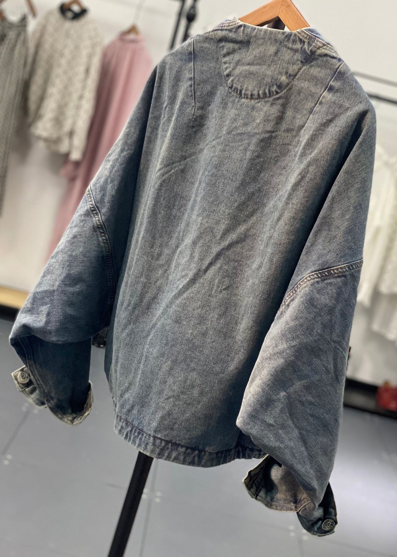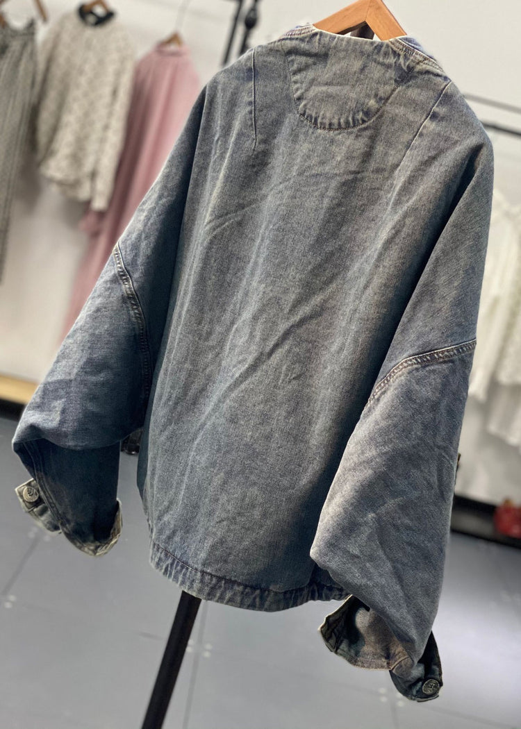 Original Retro Blue Asymmetrical Patch Bat Sleeve Denim Coats