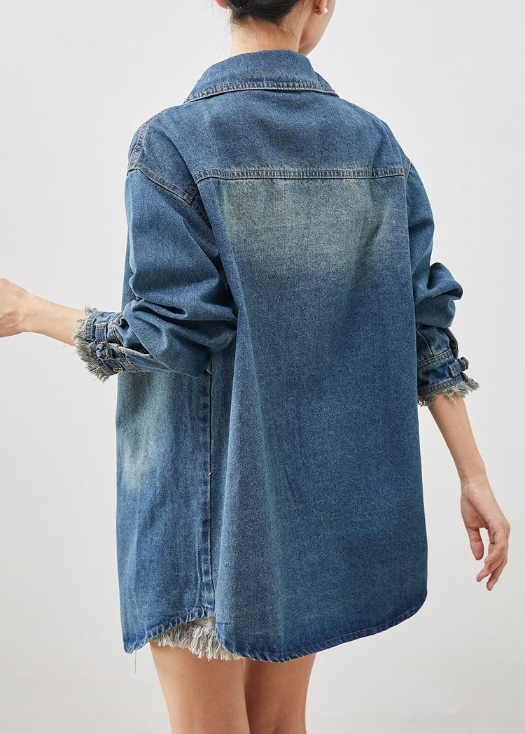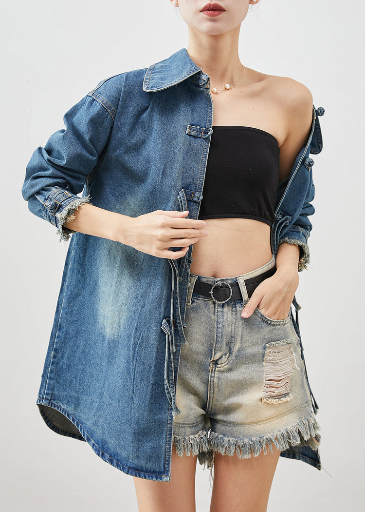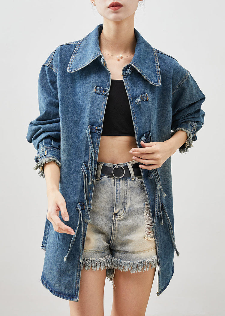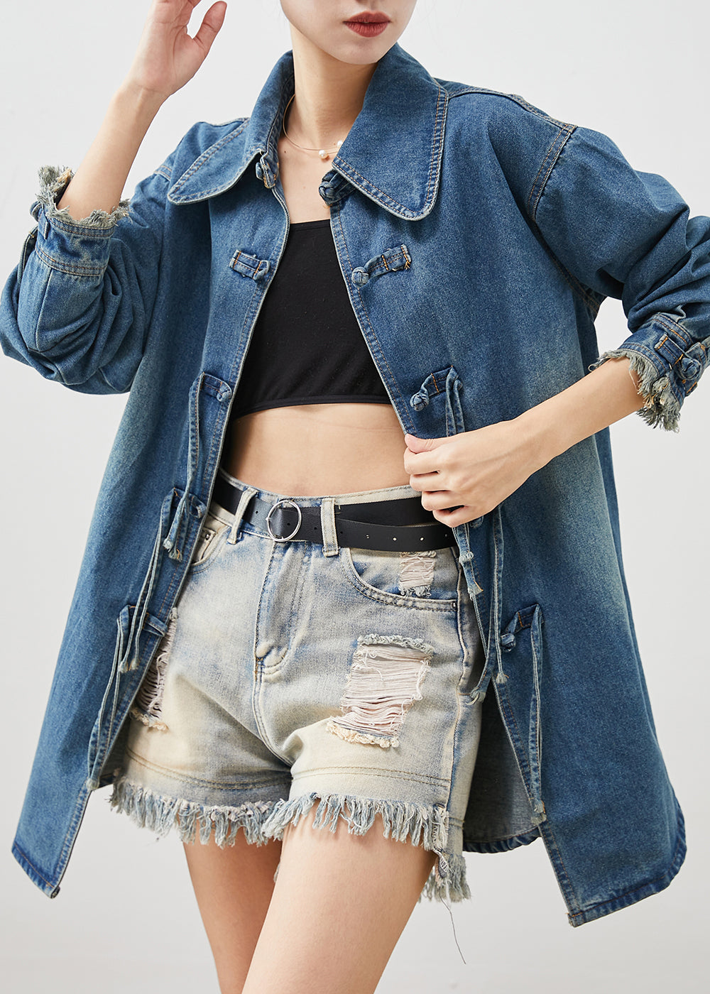 Plus Size Denim Blue Chinese Button Cotton Coat Outwear Spring