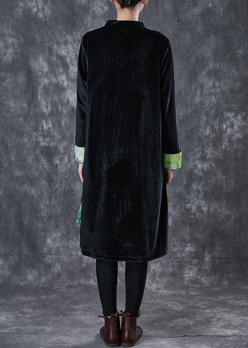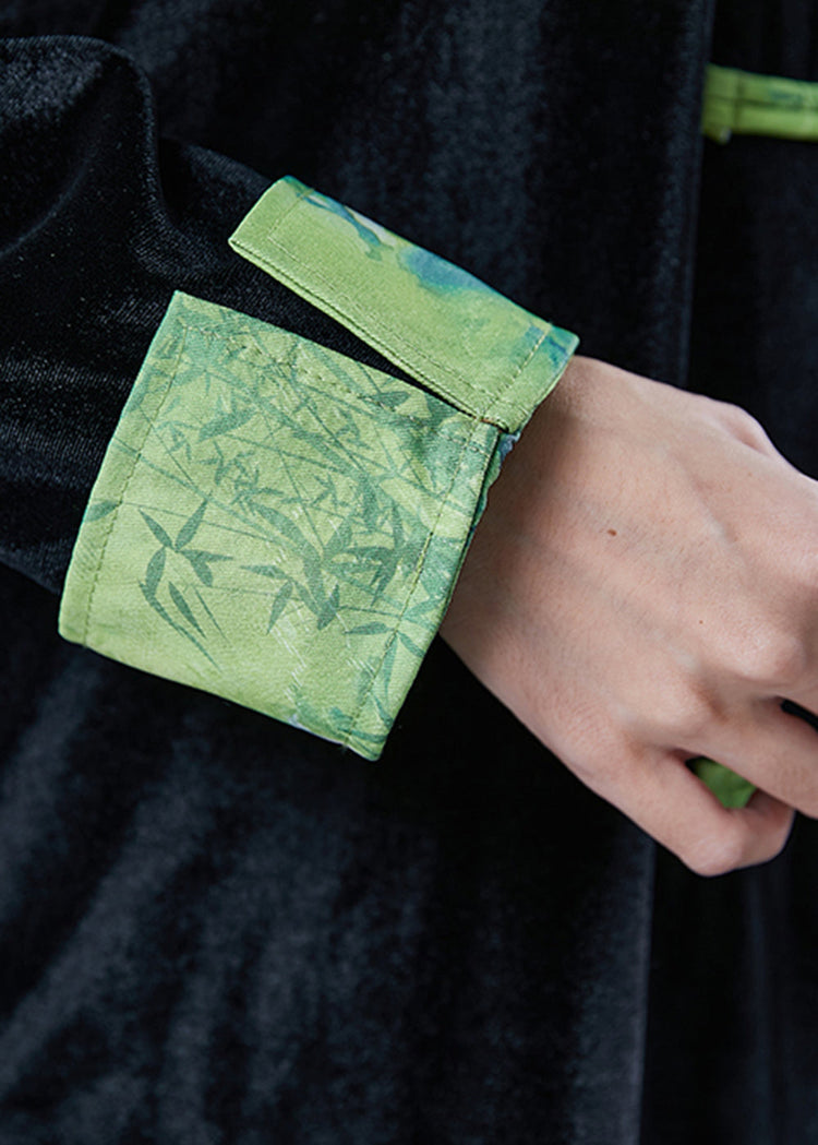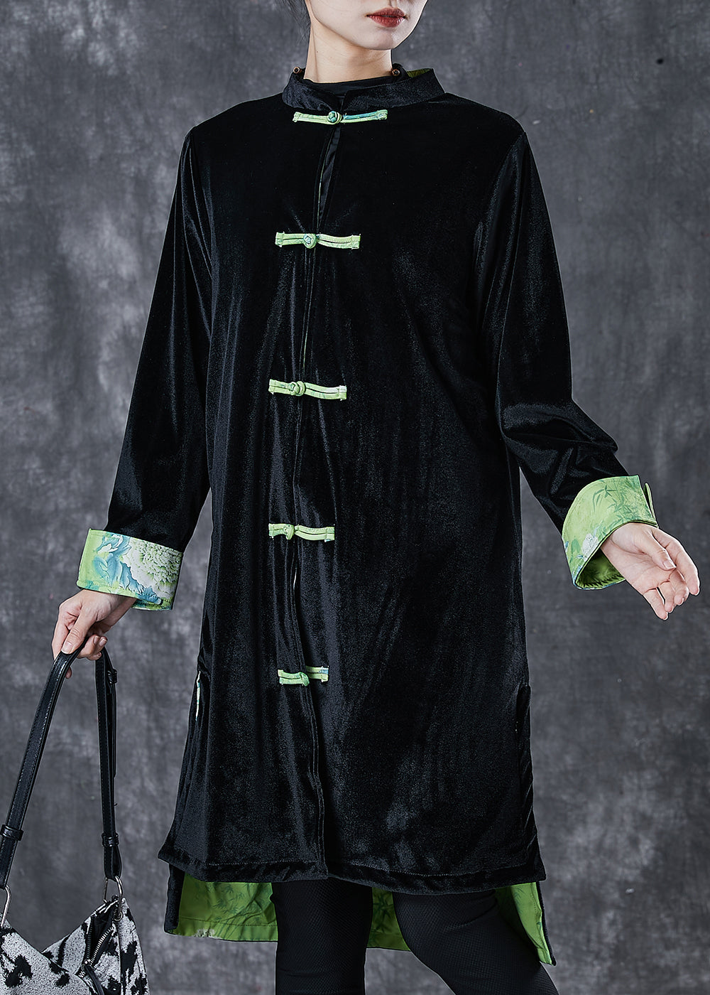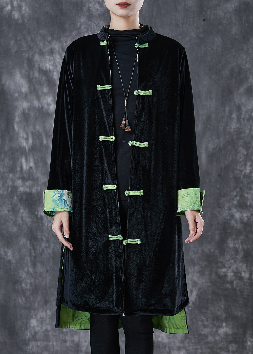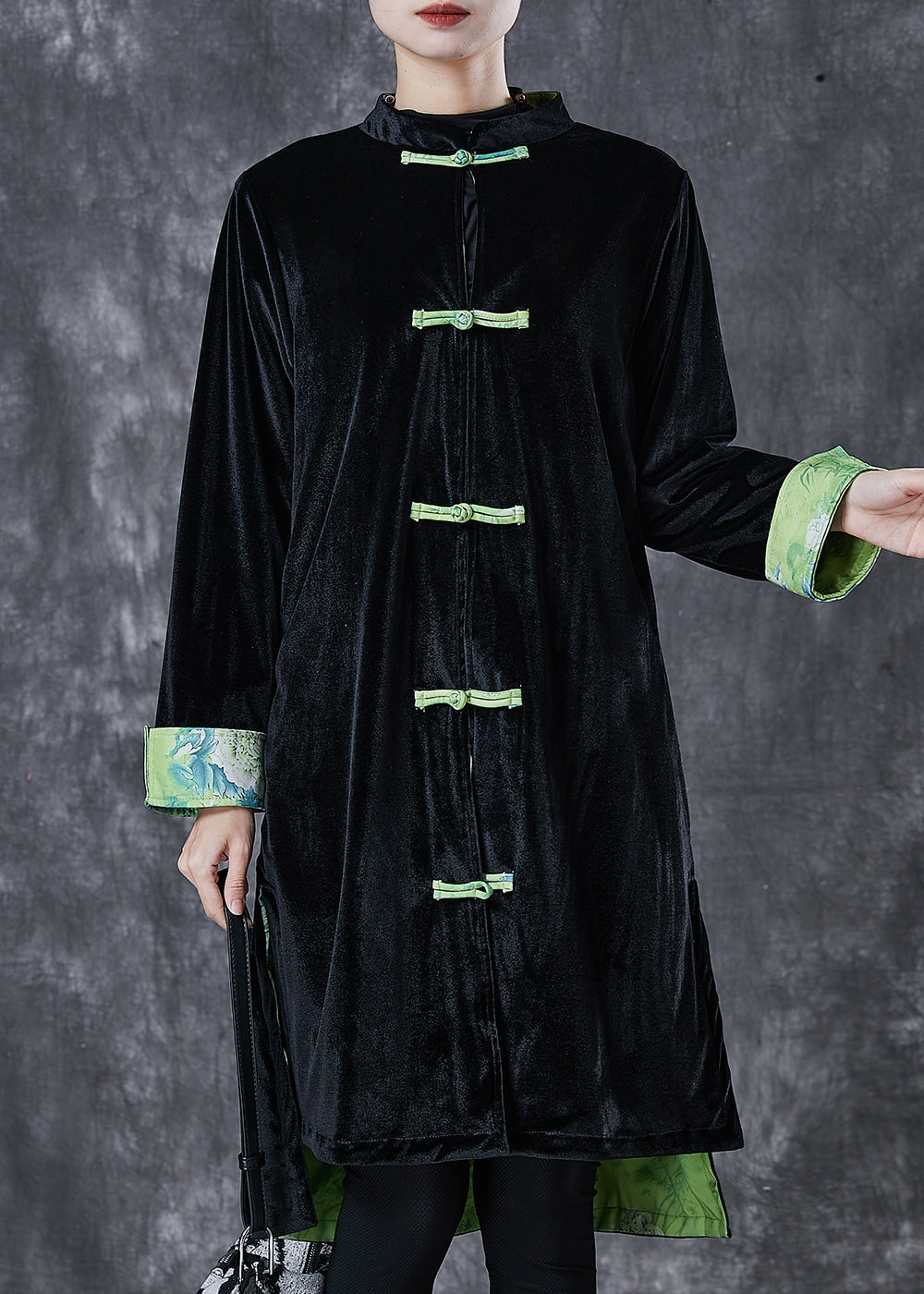 Vintage Black Chinese Button Silk Velvet Coat Outwear Spring