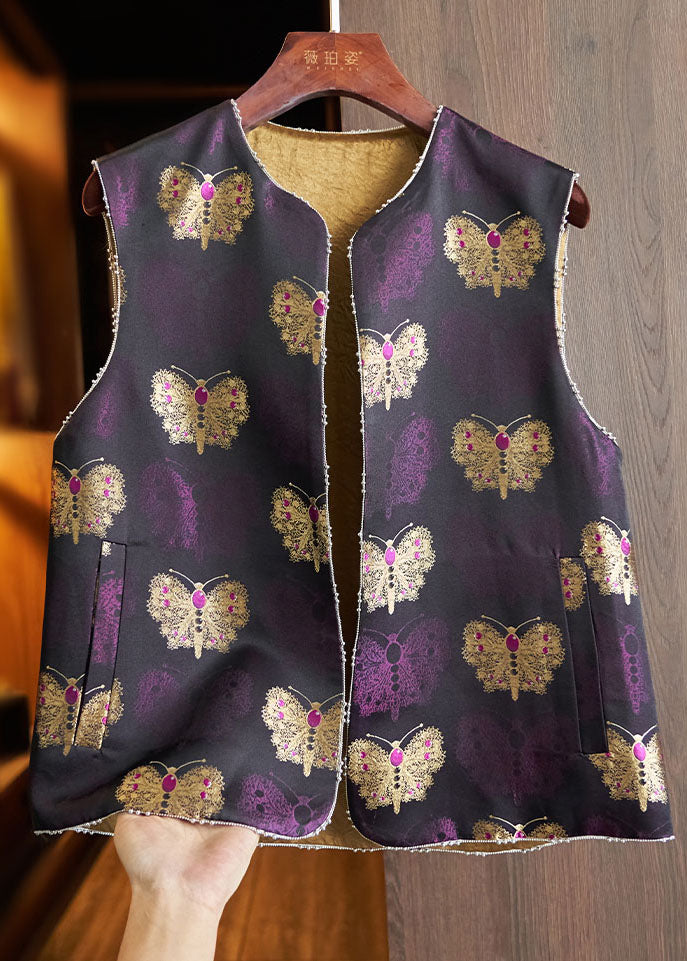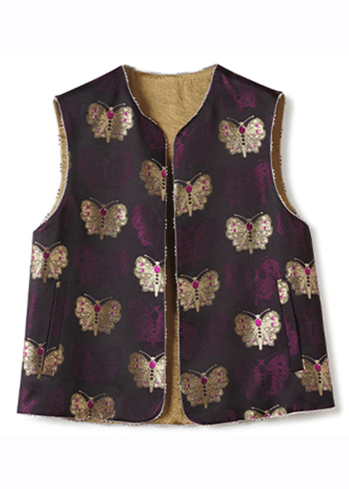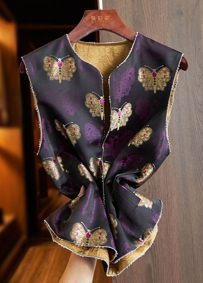 Vintage Purple Embroideried Nail Bead Silk Waistcoat Fall