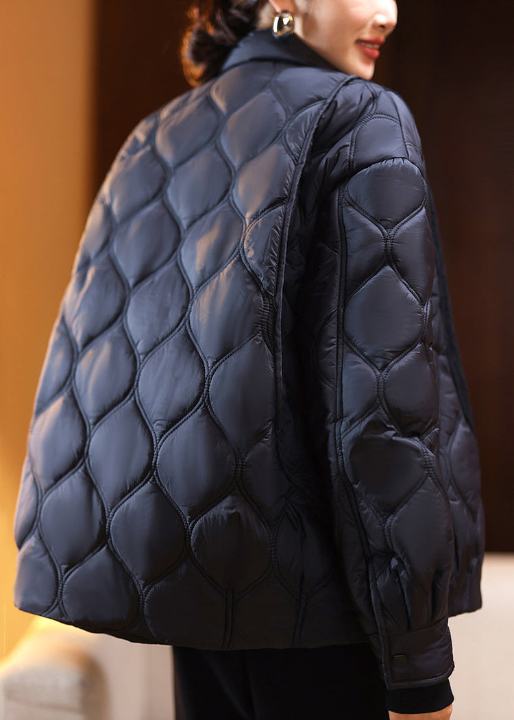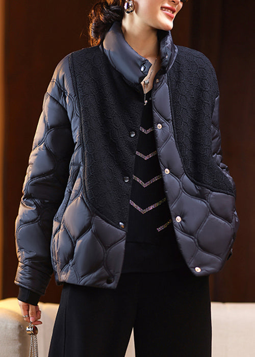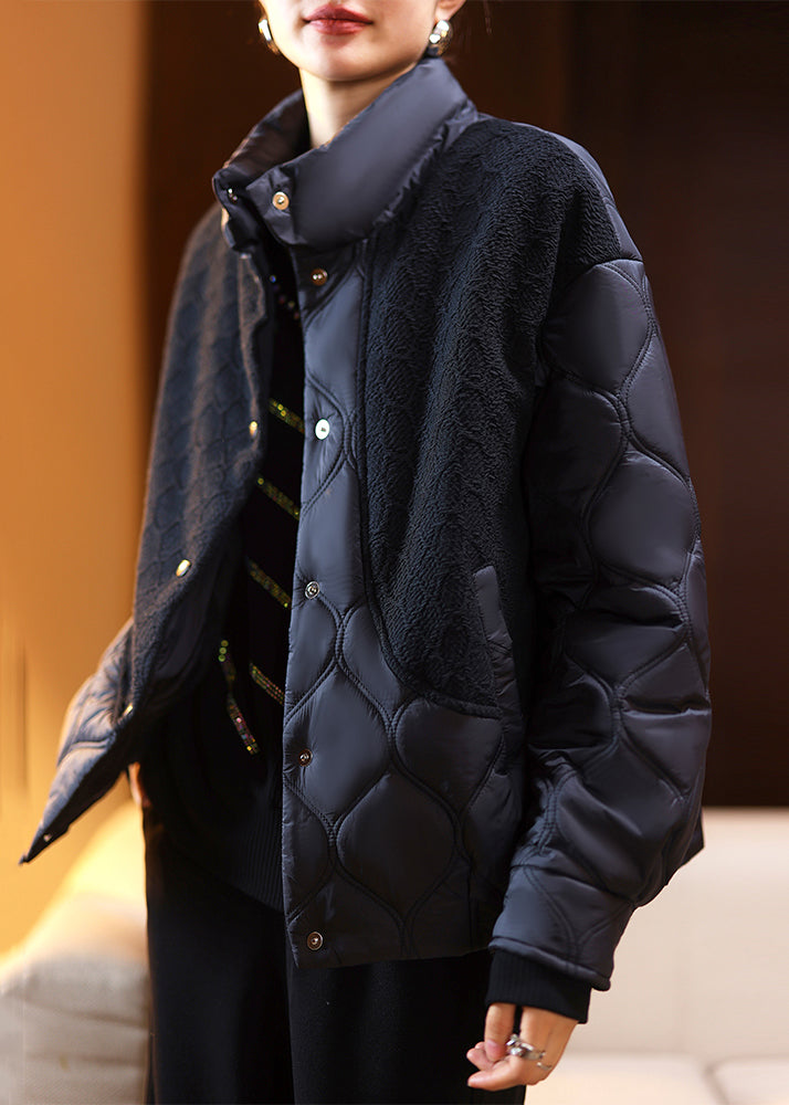 Women Black Button Pockets Cotton Filled Parka Long Sleeve