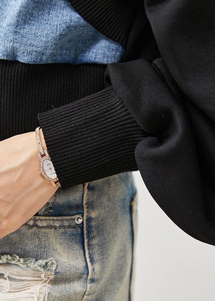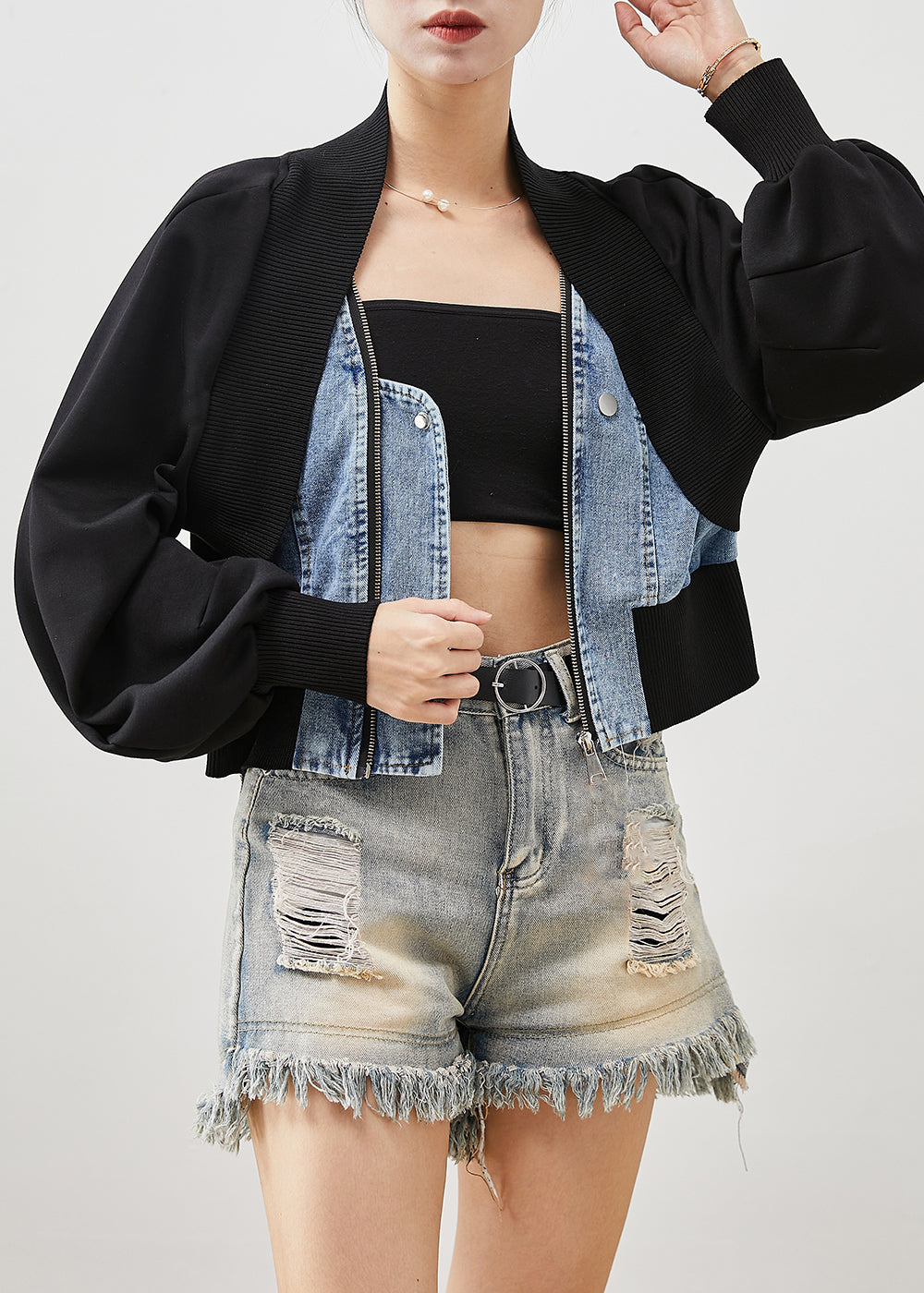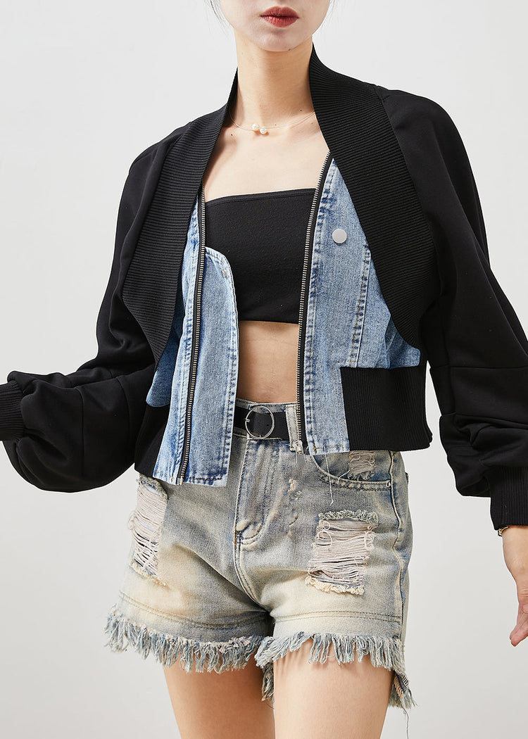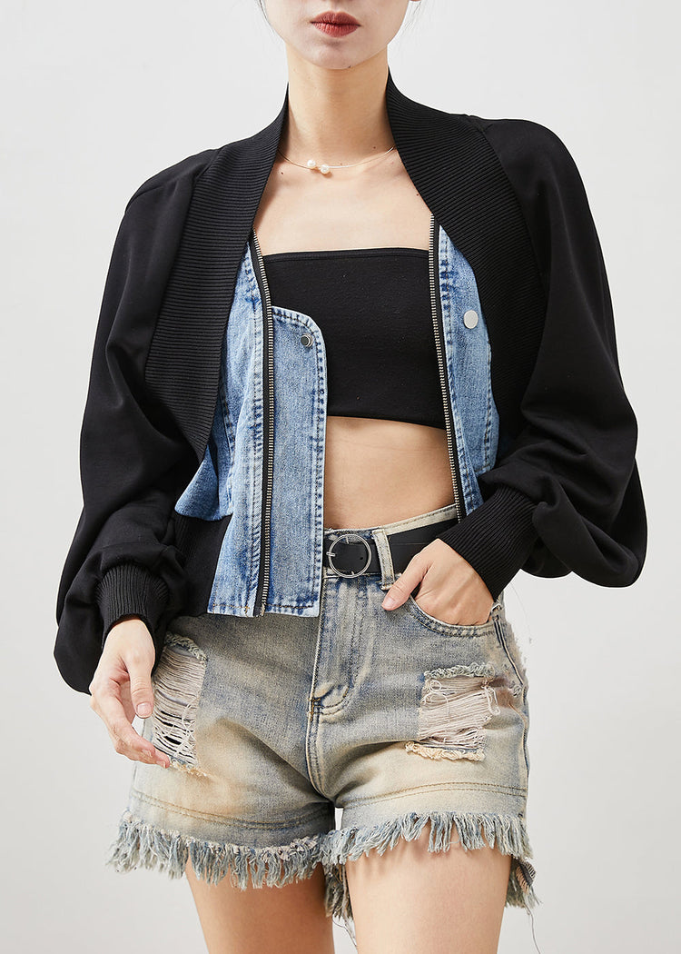 Women Black Oversized Patchwork Denim Fake Two Piece Coats Spring