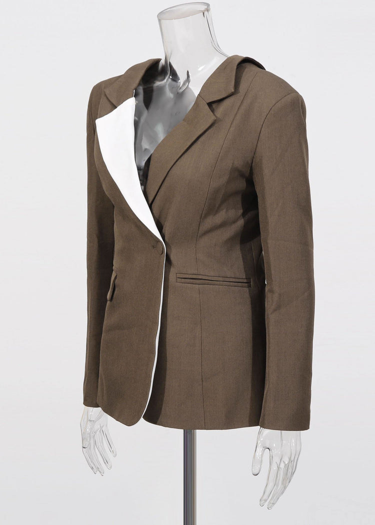Women Elegant Brown Peter Pan Collar Patchwork Suit Coats Fall