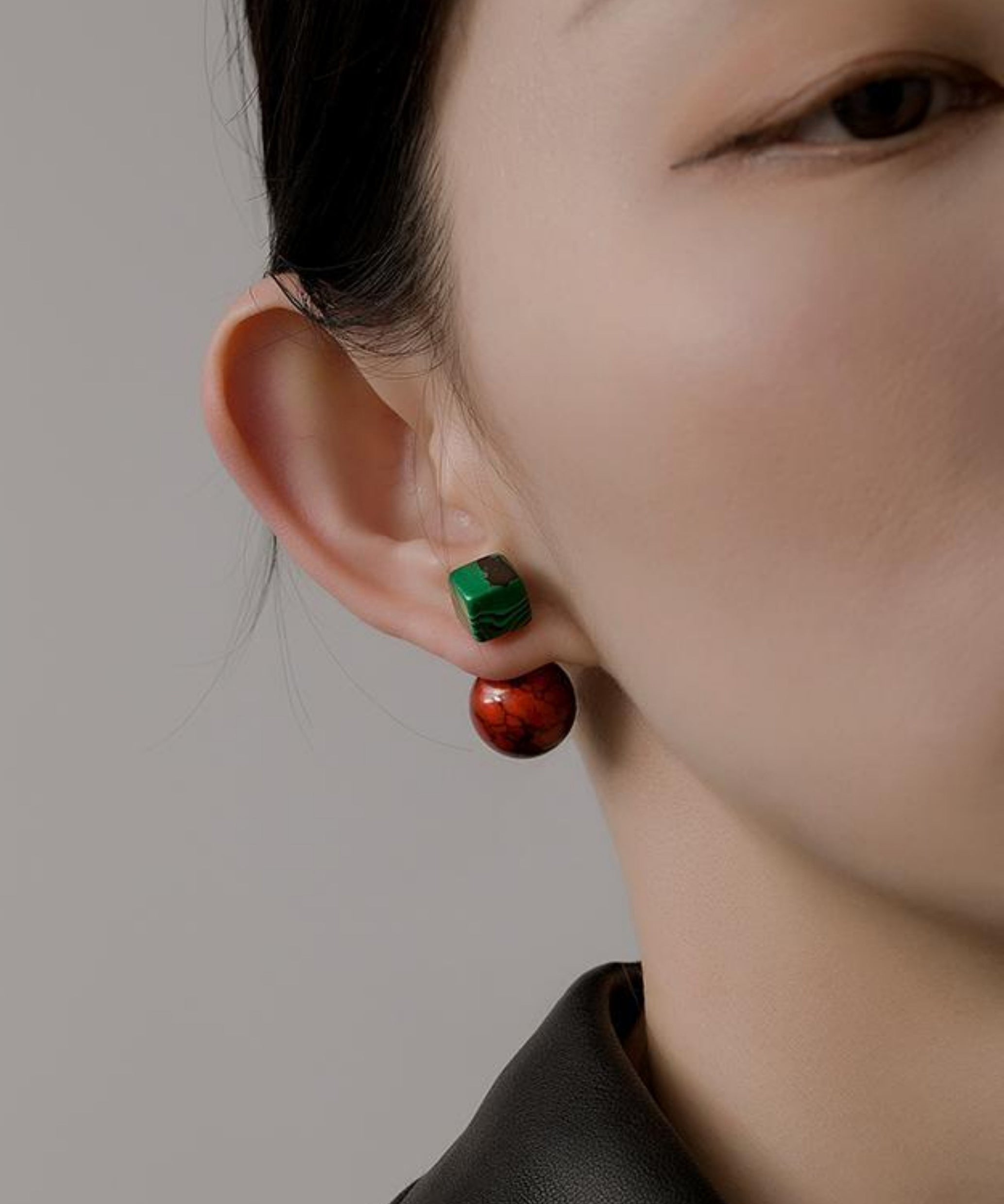 Art Colorblock Copper Overgild Gem Stone Drop Earrings
