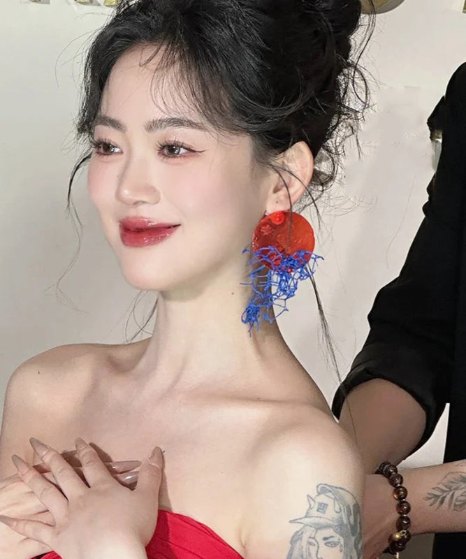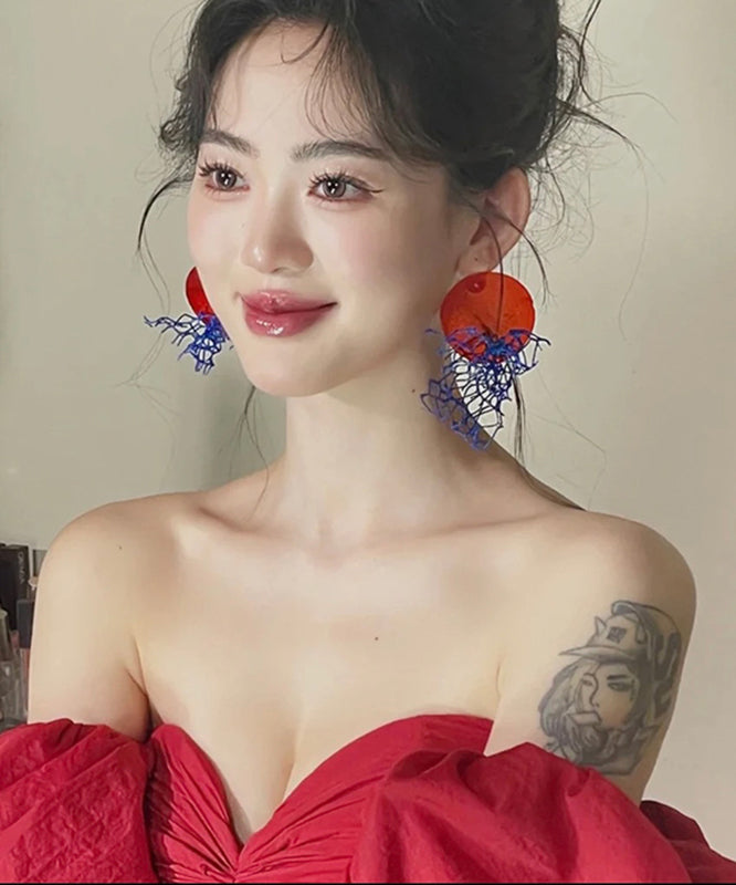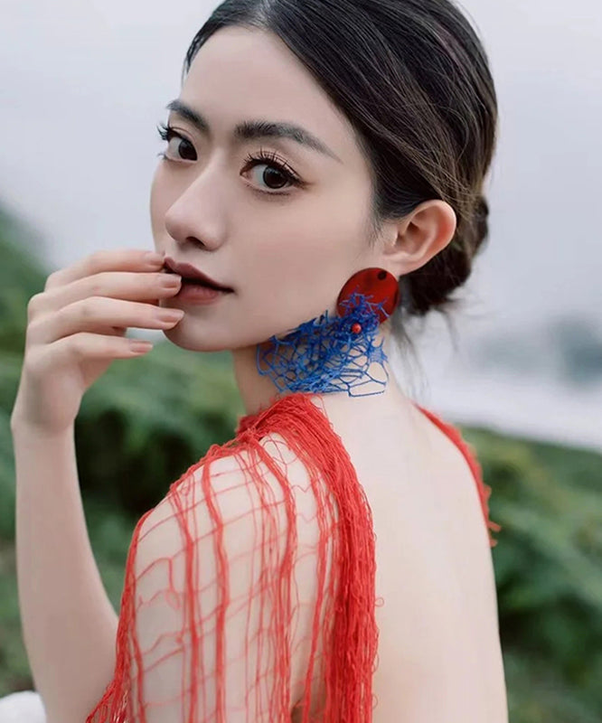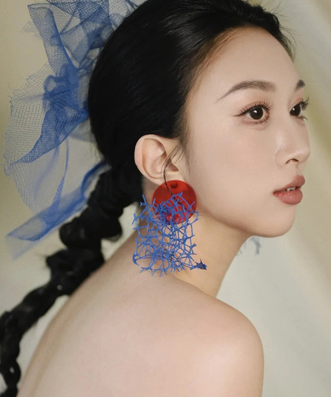 Chinese Style Colorblock Tulle Shell Hollow Out Drop Earrings