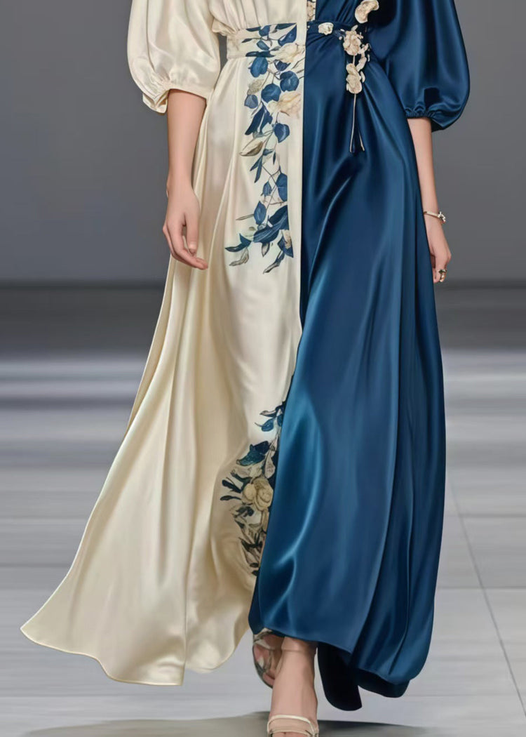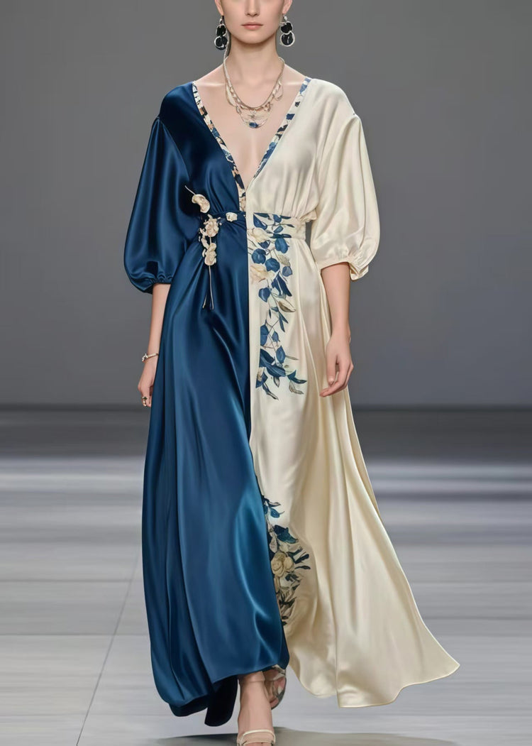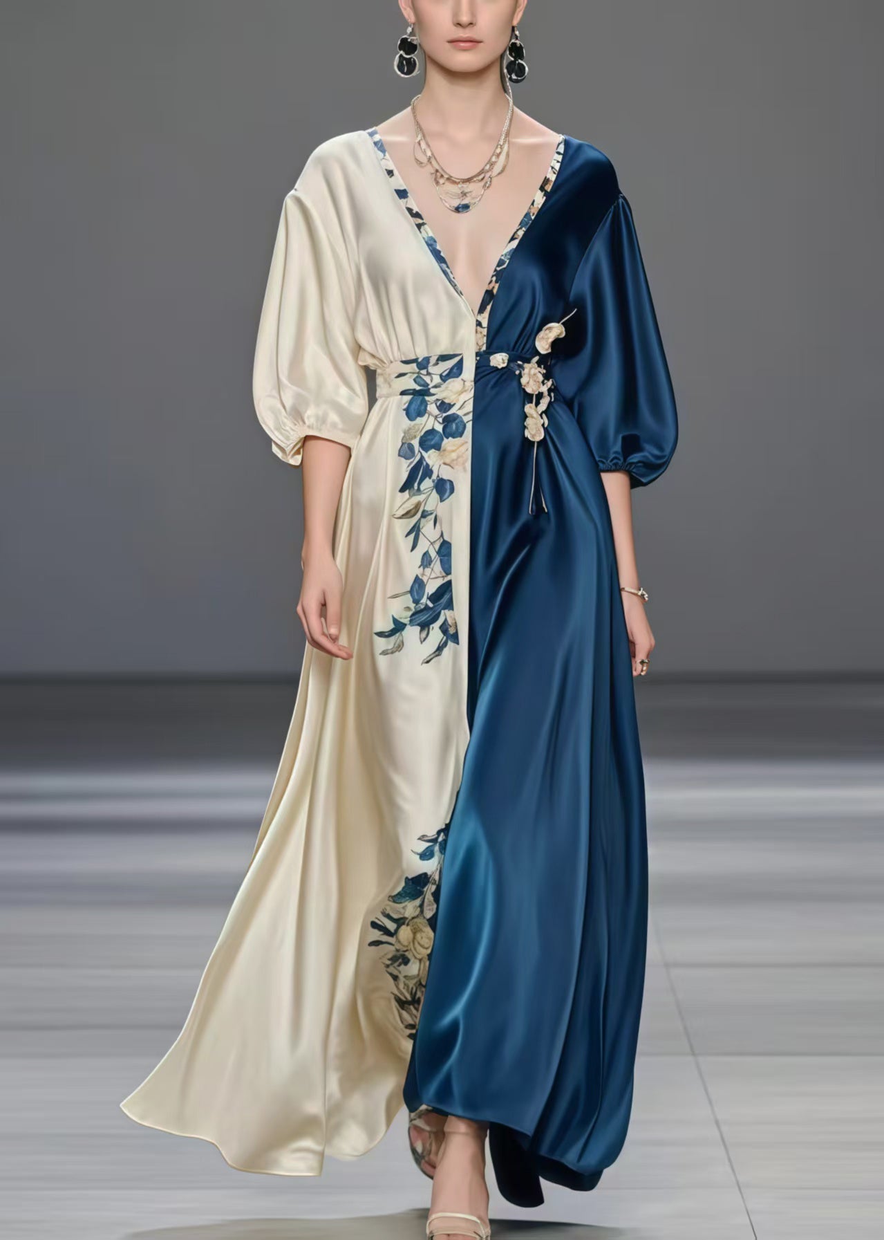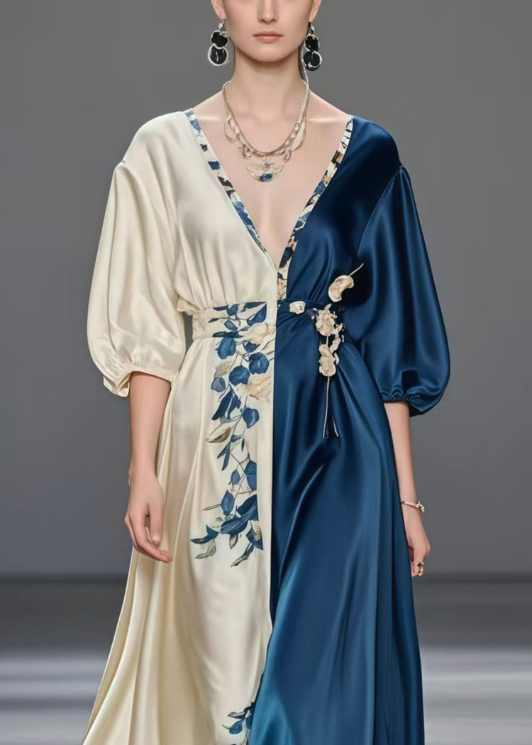 Classy Colorblock Cinched Print Silk Ankle Dress Summer