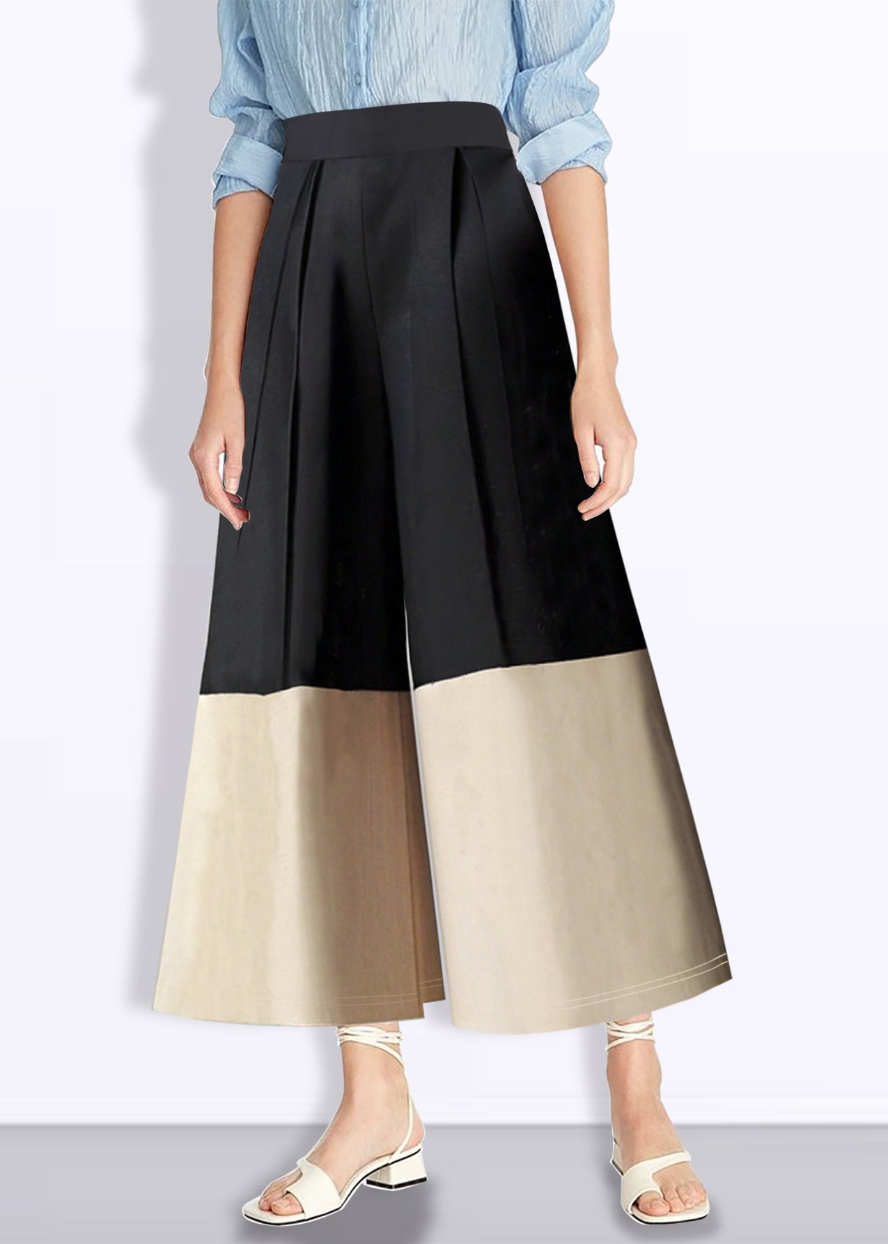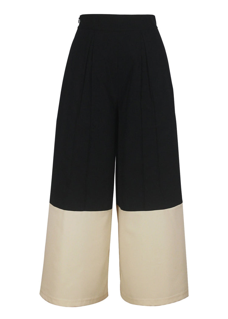 Fashion Colorblock High Waist Pockets Crop Pants Summer