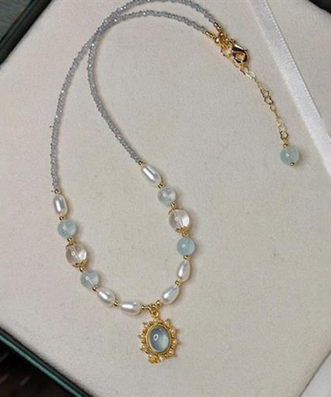 Fine Colorblock Alloy Pearl Crystal Pendant Necklace