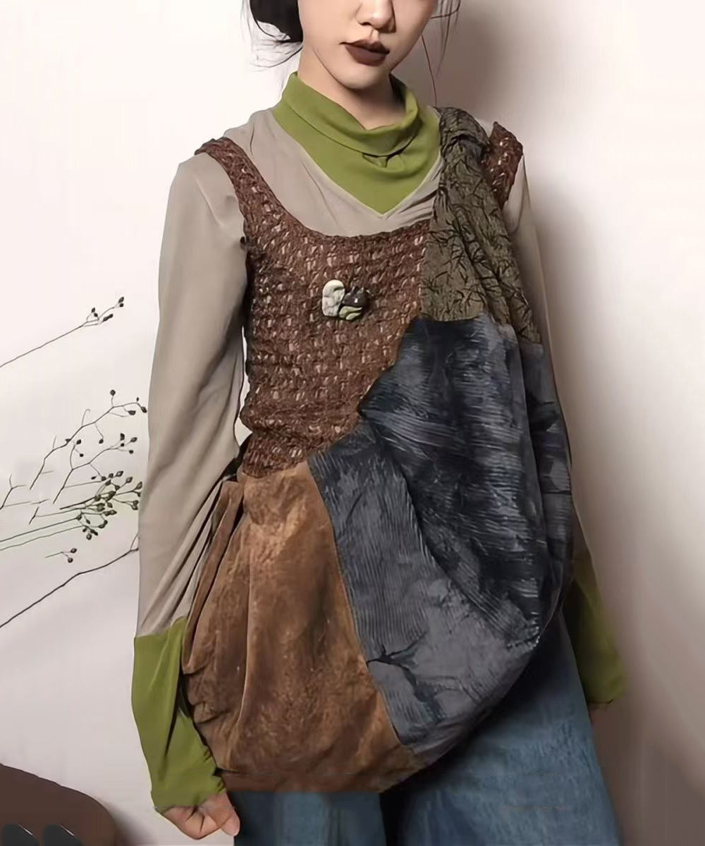 Retro Large Capacity Colorblock Spliced Shoulder Bag