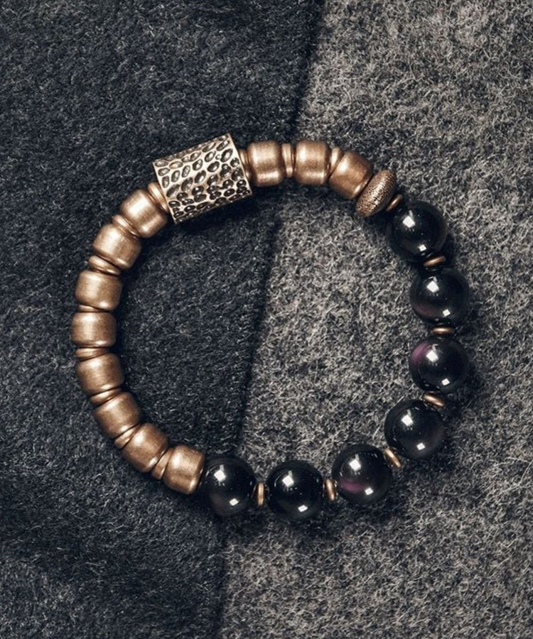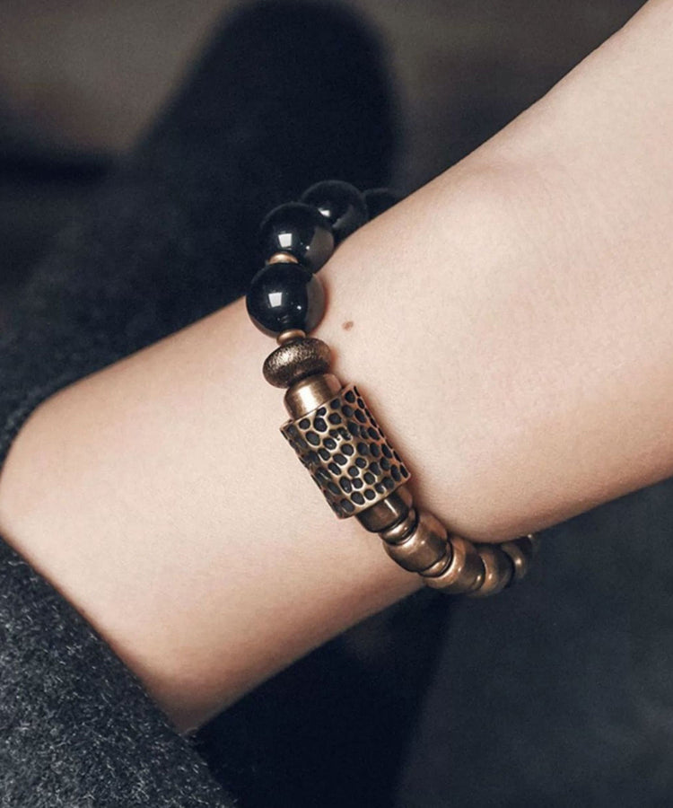 Retro Men Colorblock Ancient Gold Beads Bracelet