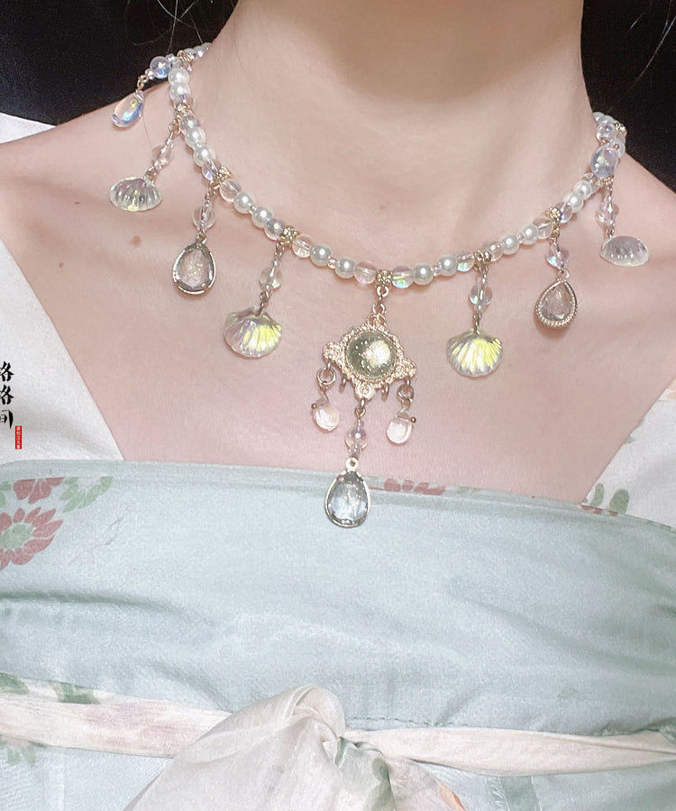 Unique Colorblock Pearl Shell Flower Lariat Necklace