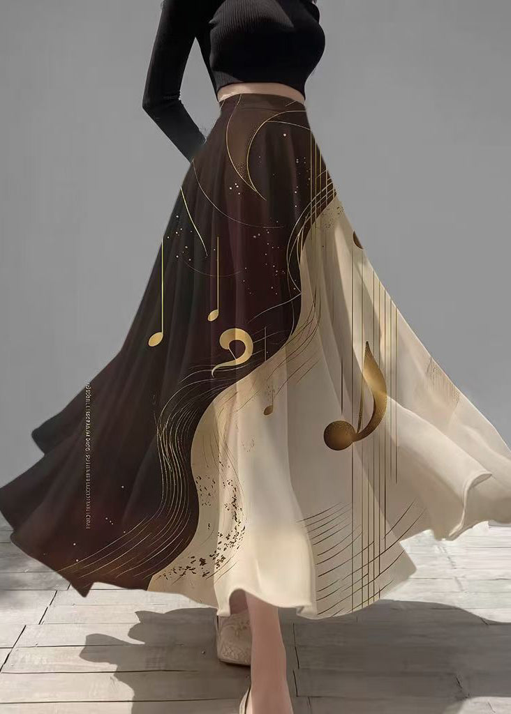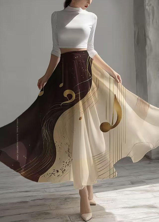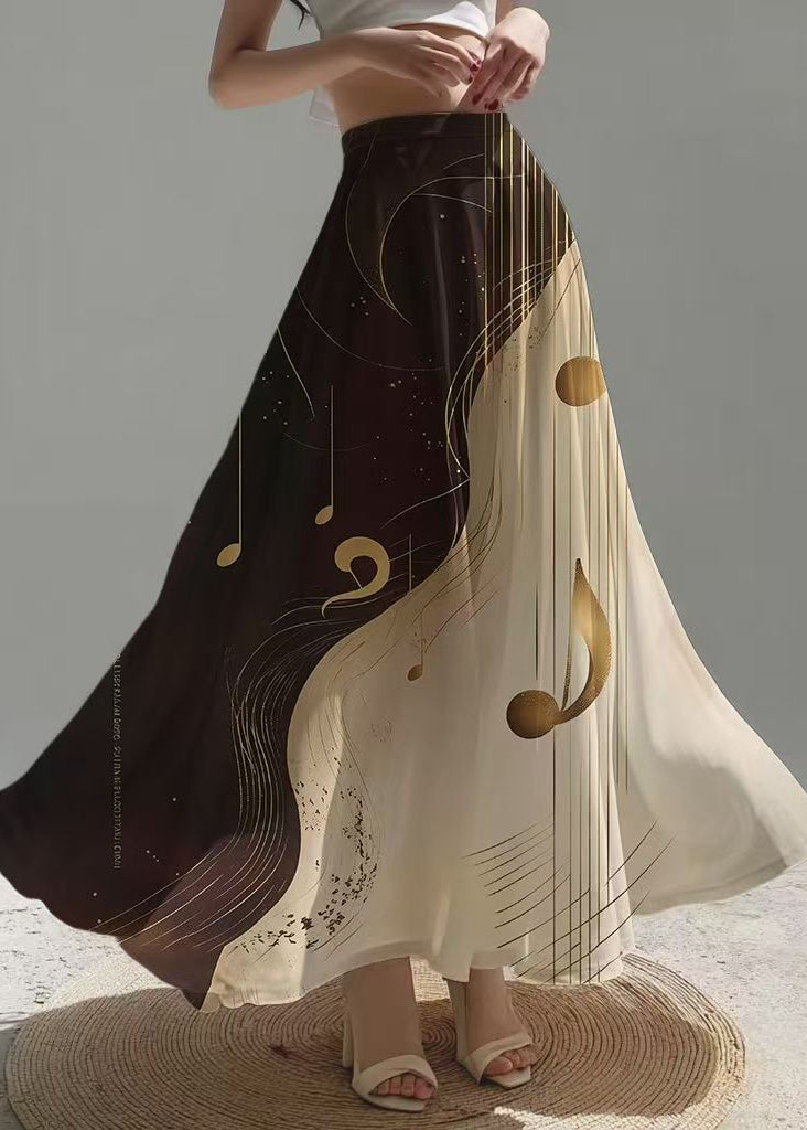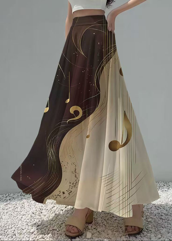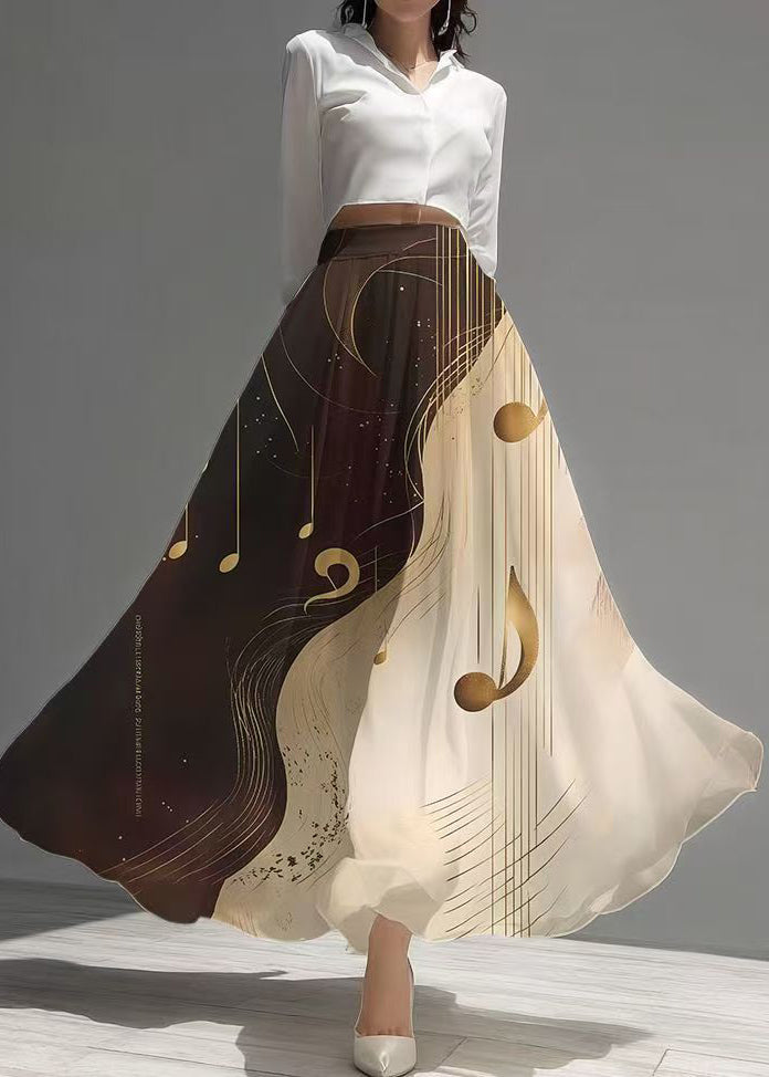 Unique Colorblock Print Exra Large Hem Chiffon Skirt Summer