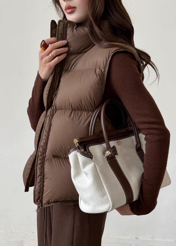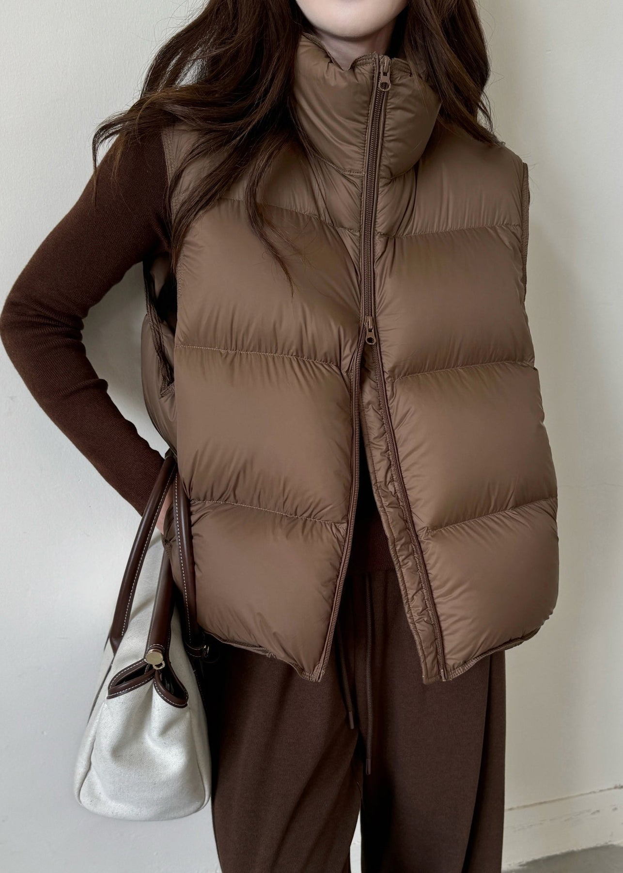 Vintage Coffee Stand Collar Zip Up Duck Down Waistcoat Sleeveless
