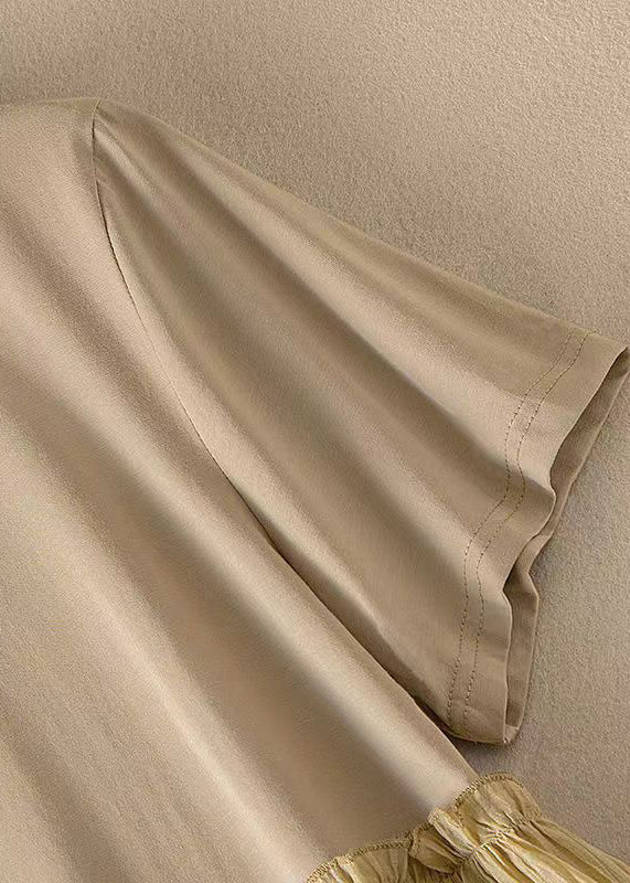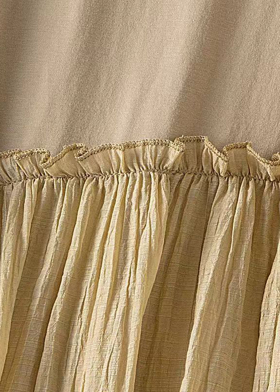 Casual Colorblock O Neck Ruffled Patchwork Cotton Dresses Summer