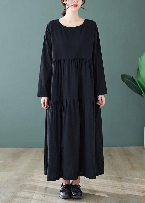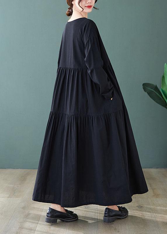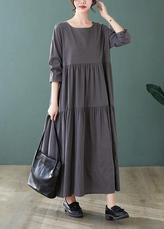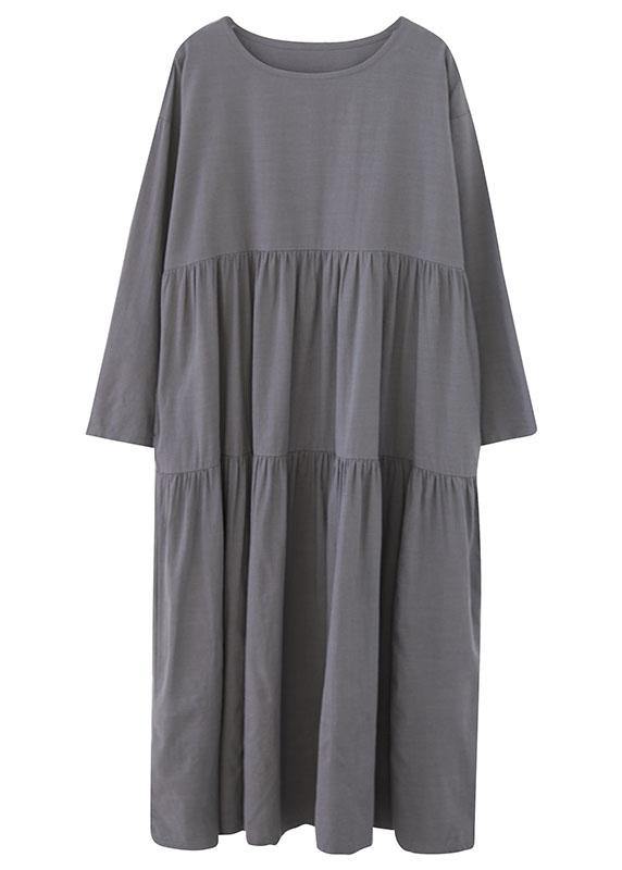 Fashion Grey Loose Pockets wrinkled Fall Vacation Dresses Long sleeve - Omychic