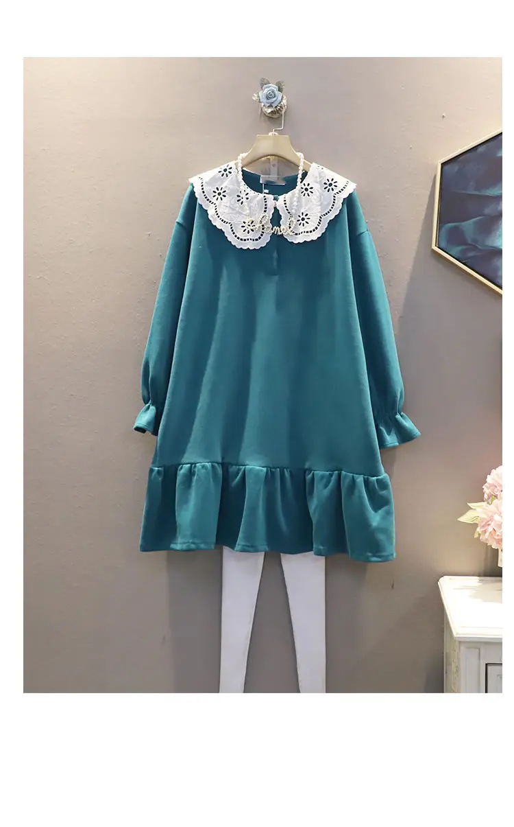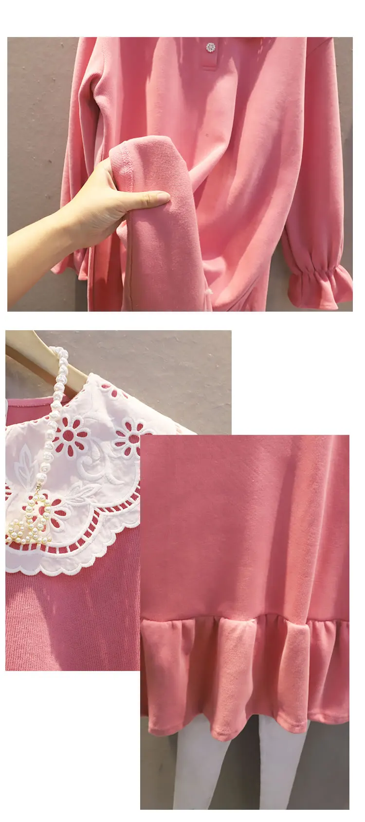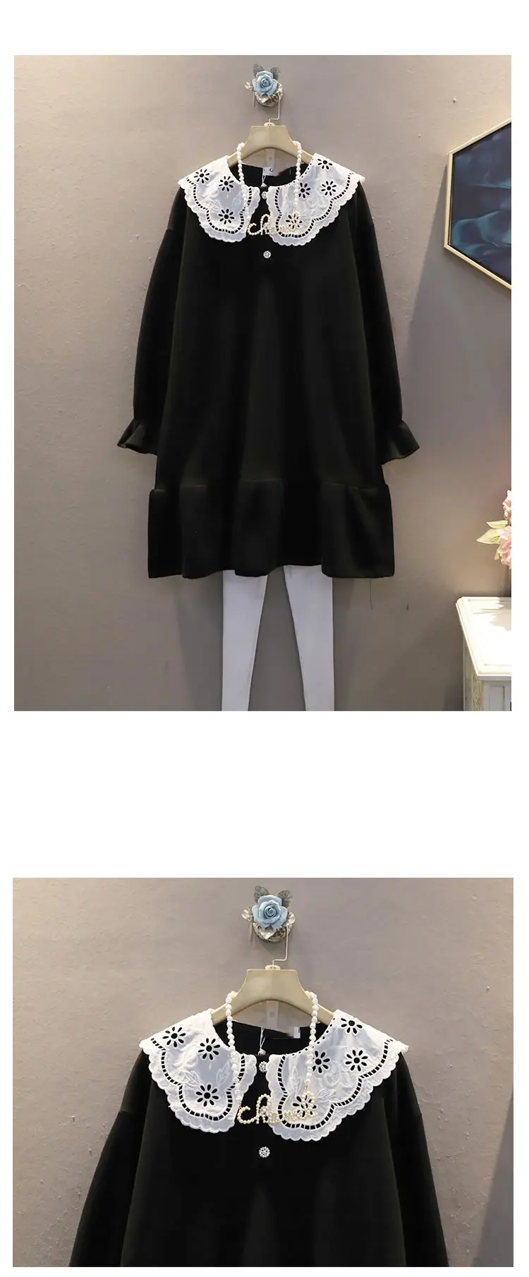 Winter Fashion Elegant Loose Patchwork Pleated Dress Loose Casual Pullover Dress