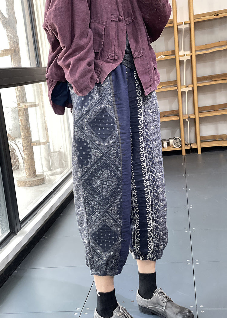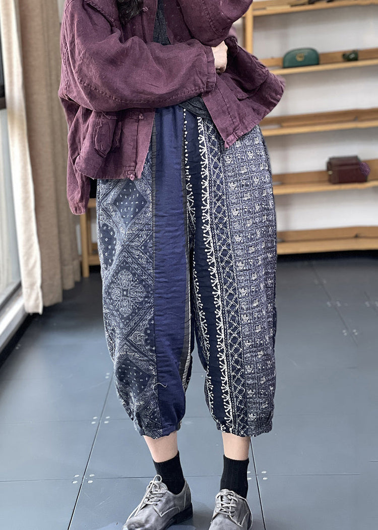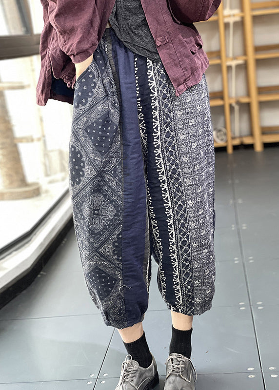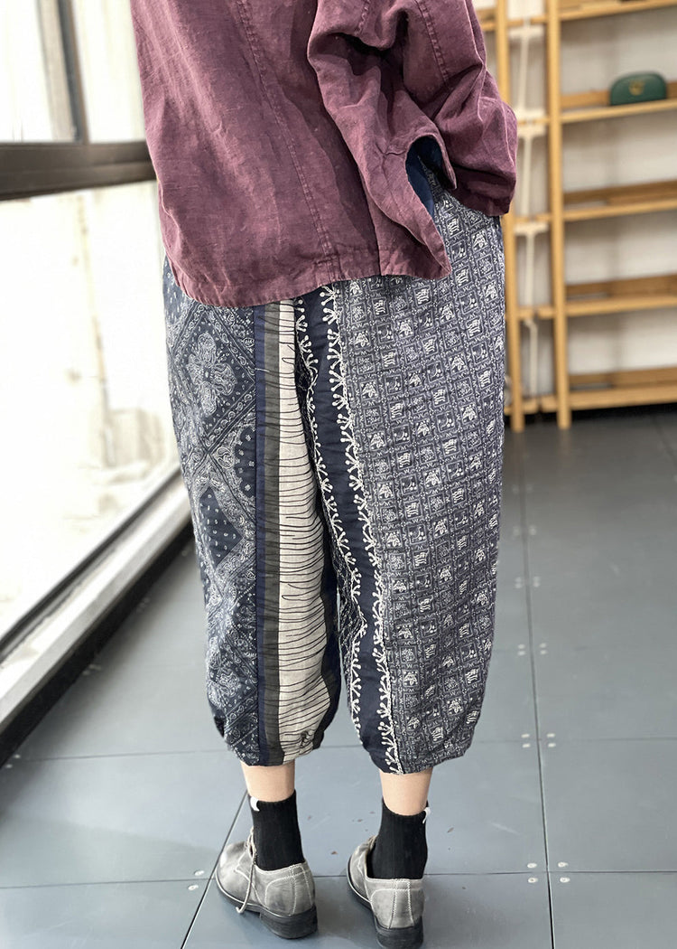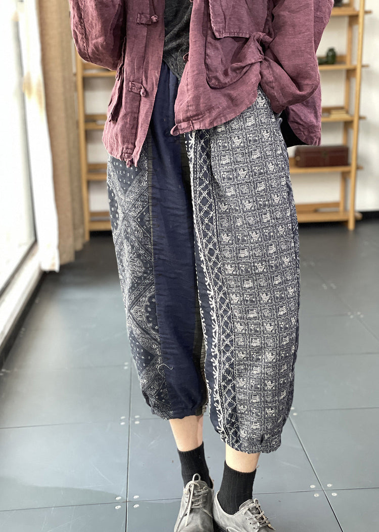 Loose Colorblock Print Pockets Patchwork Cotton Crop Pants Summer