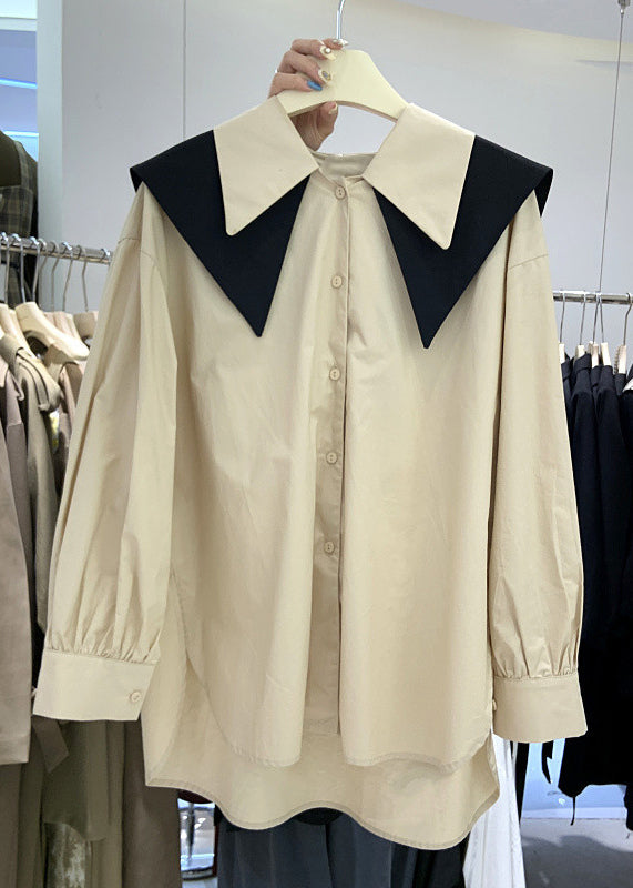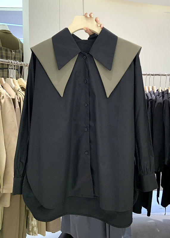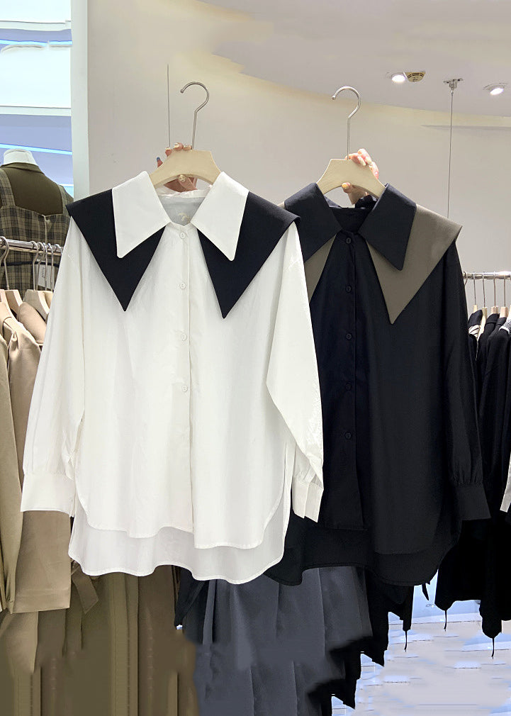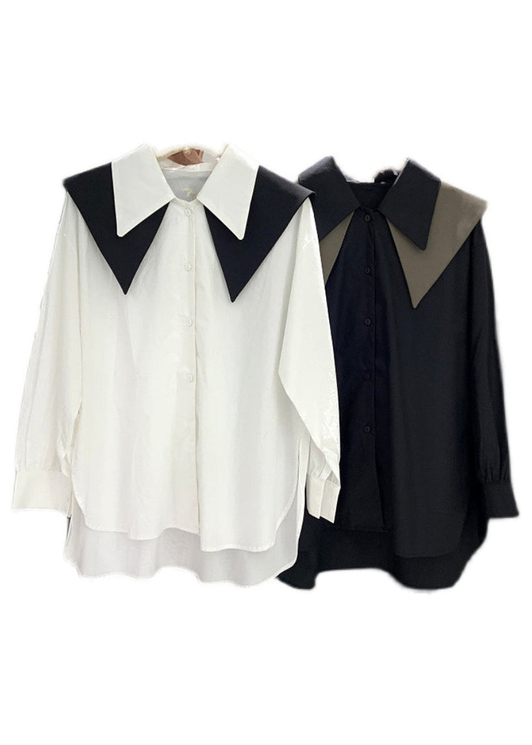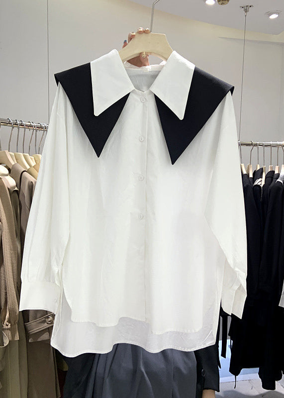 New White Peter Pan Collar Low High Design Cotton Shirt Long Sleeve