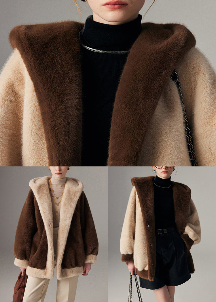 Plus Size Beige Hooded Pockets Patchwork Mink Hair Coats Winter