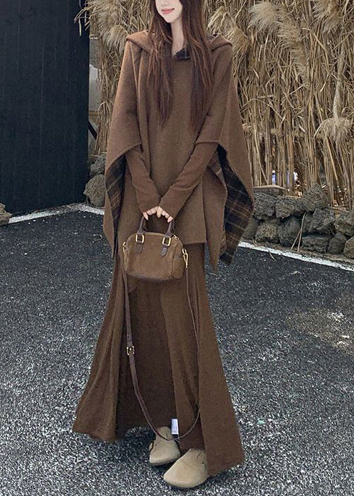Beautiful Yellowish Brown Ruffled Solid Knit Sweaters Winter
