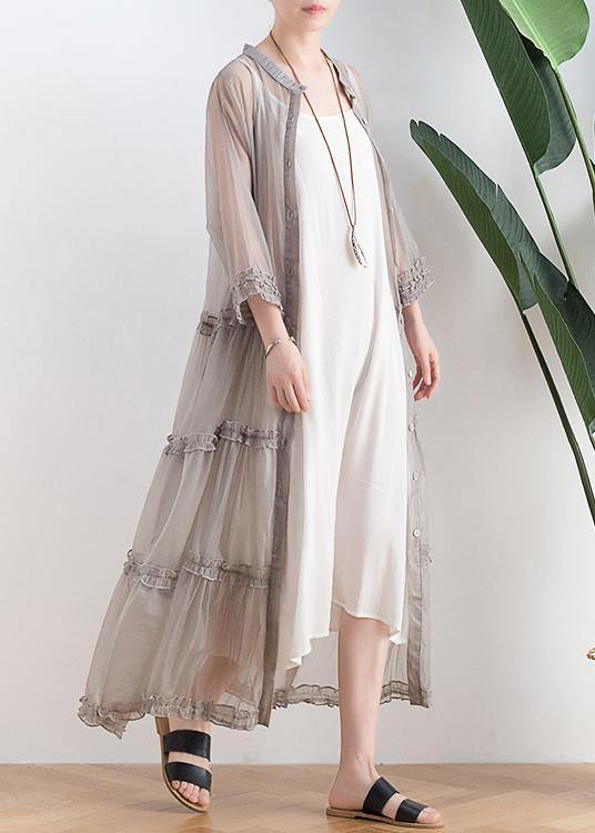 Casual Grey Button O-Neck Ankle Summer Chiffon Dress