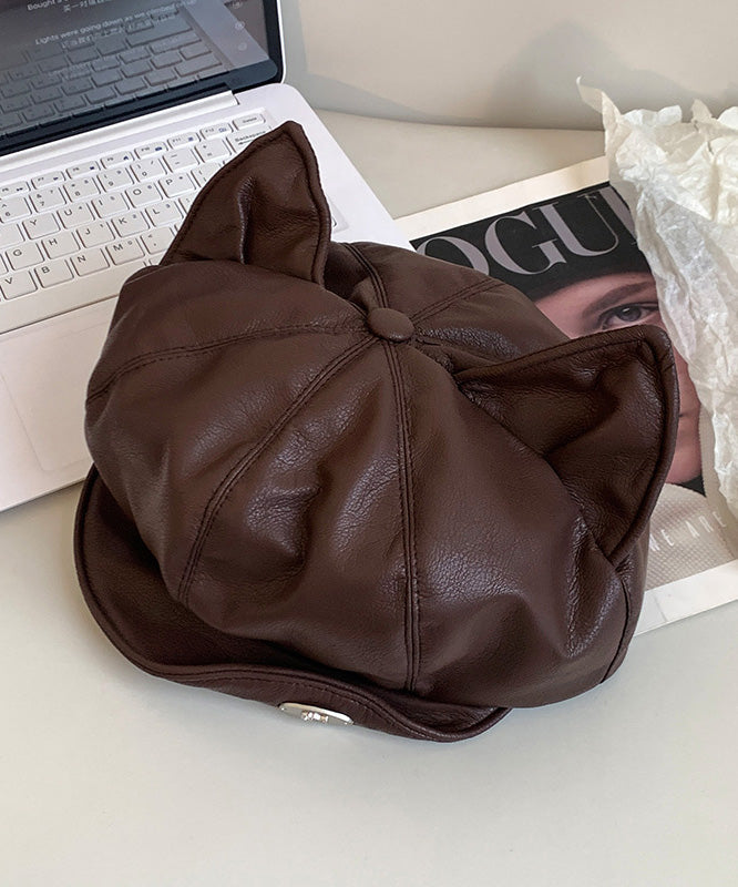 Spicy Girl Style Cat's Ears Black Faux Leather Beret Hat