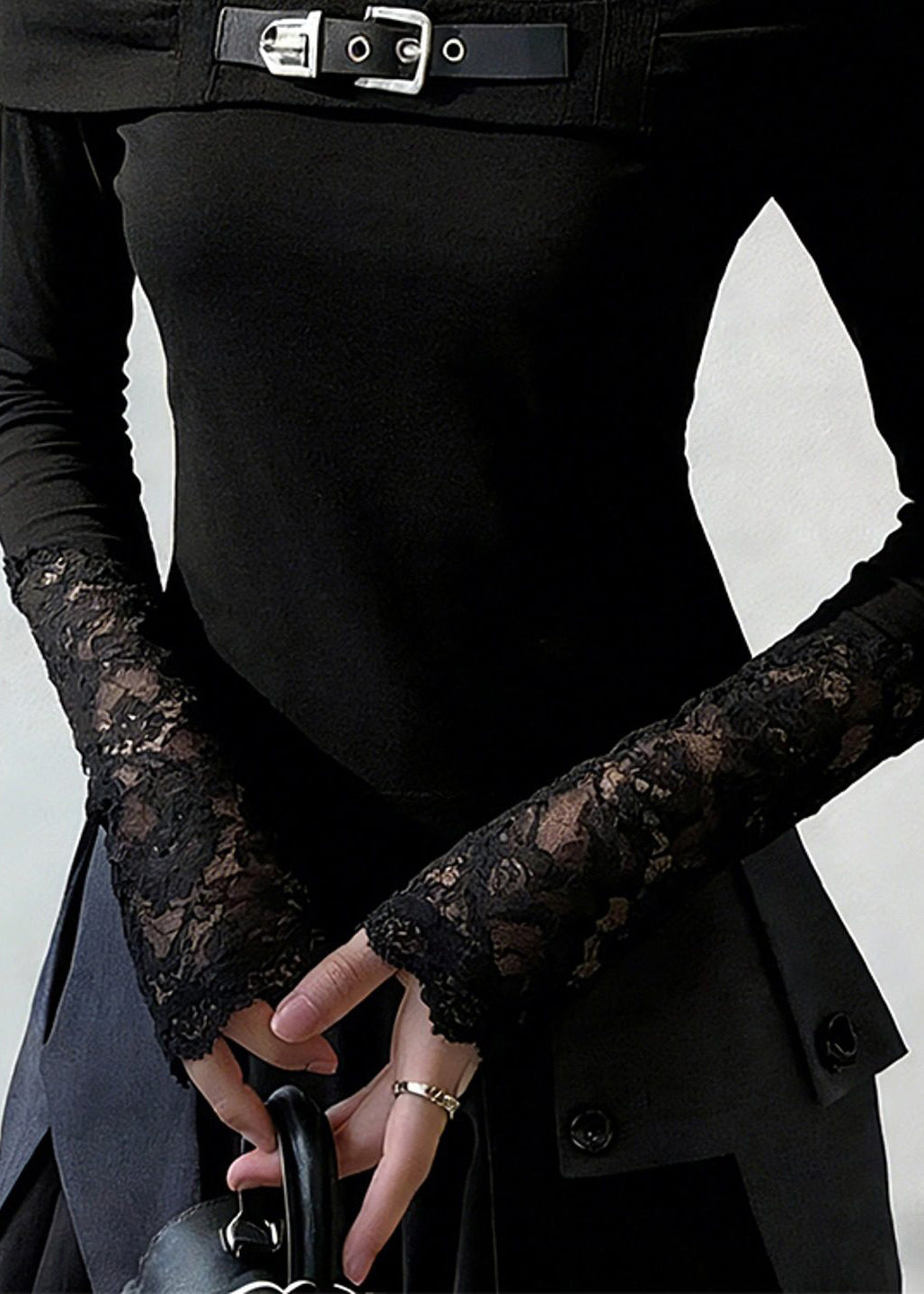 New Black V Neck Lace Patchwork T Shirt Spring